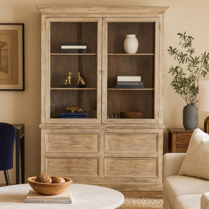 Make a statement in any room with our fabulous mango-wood cupboard. It has four drawers and two shelves inside for organization of anything from dinnerware to shoes, handbags, accessories or clothes.