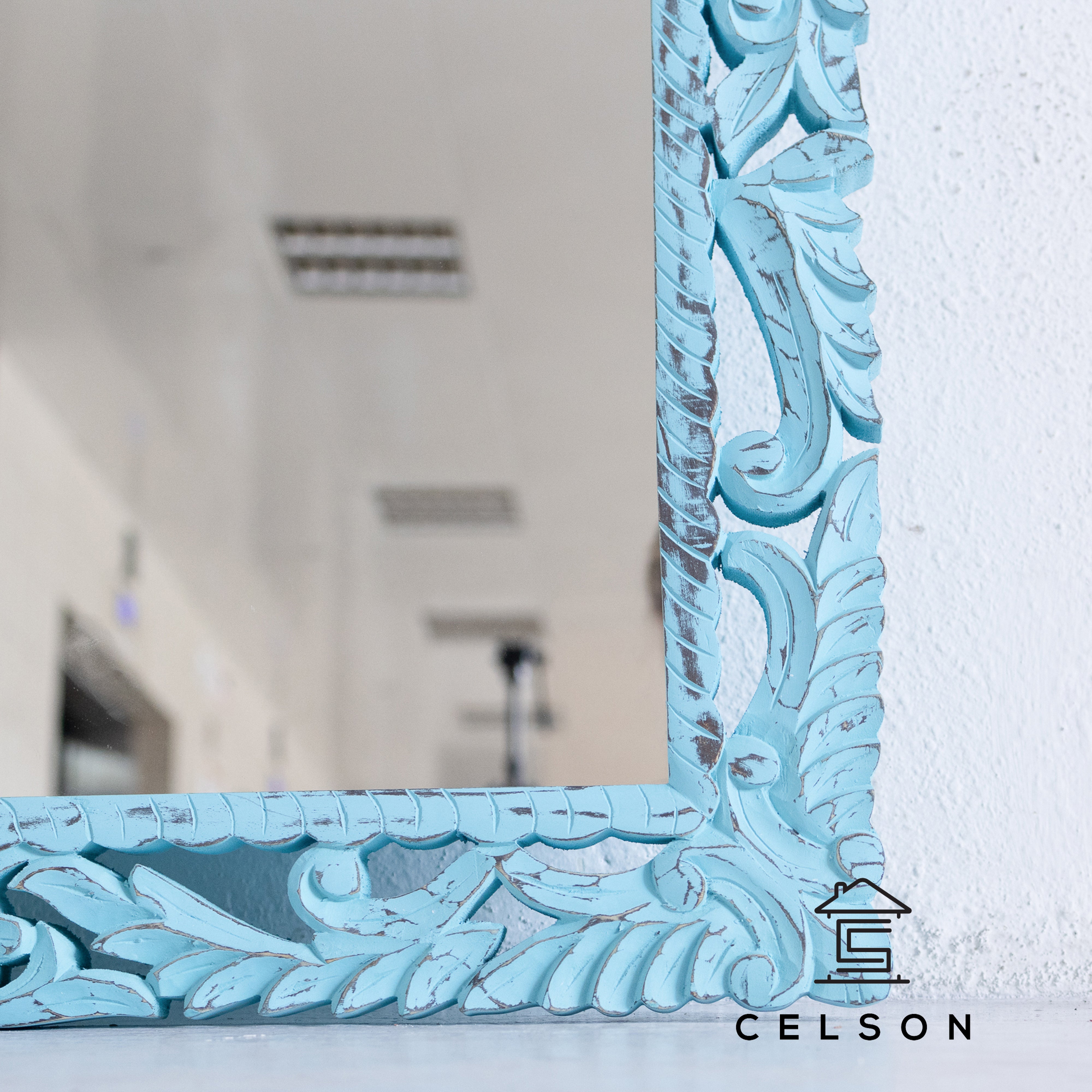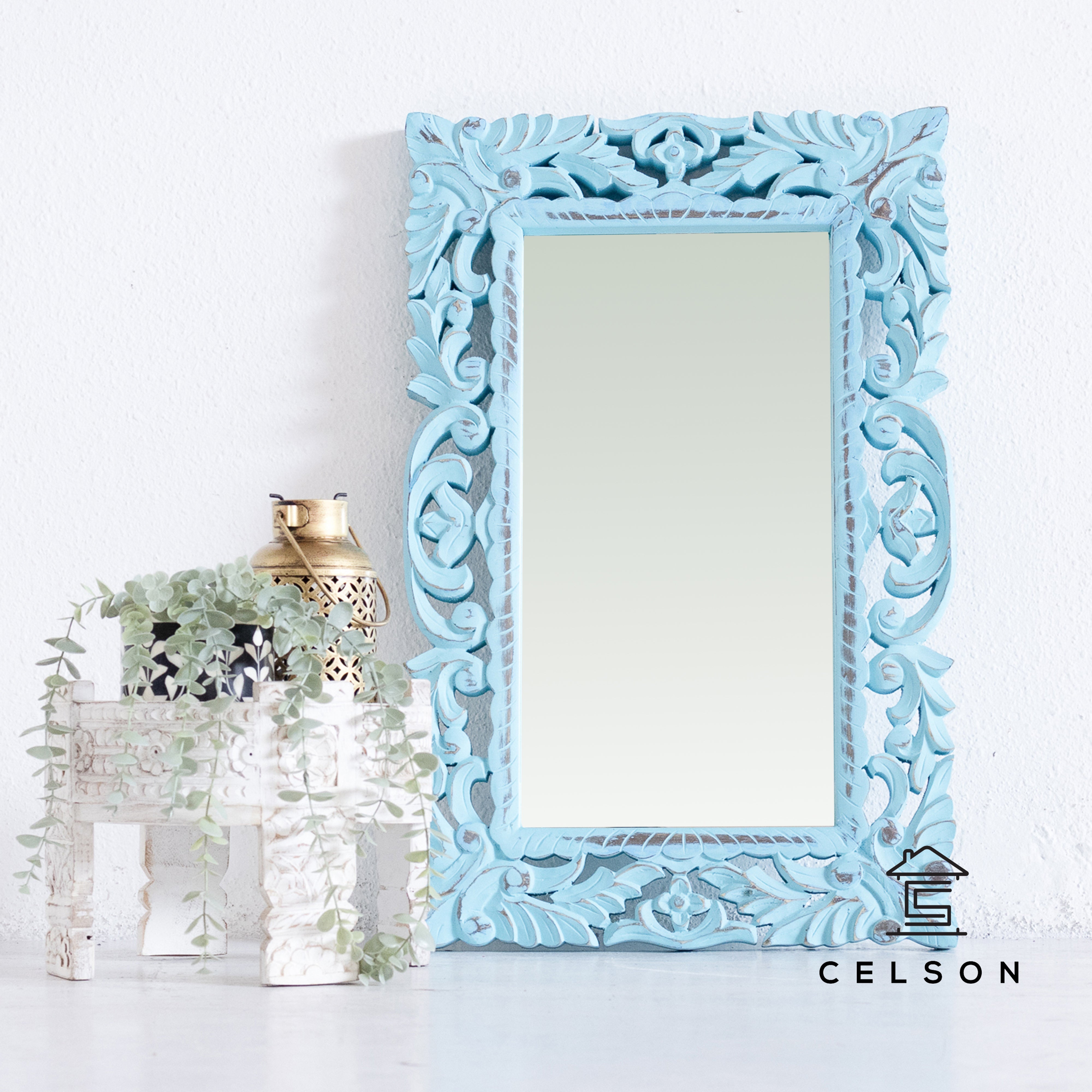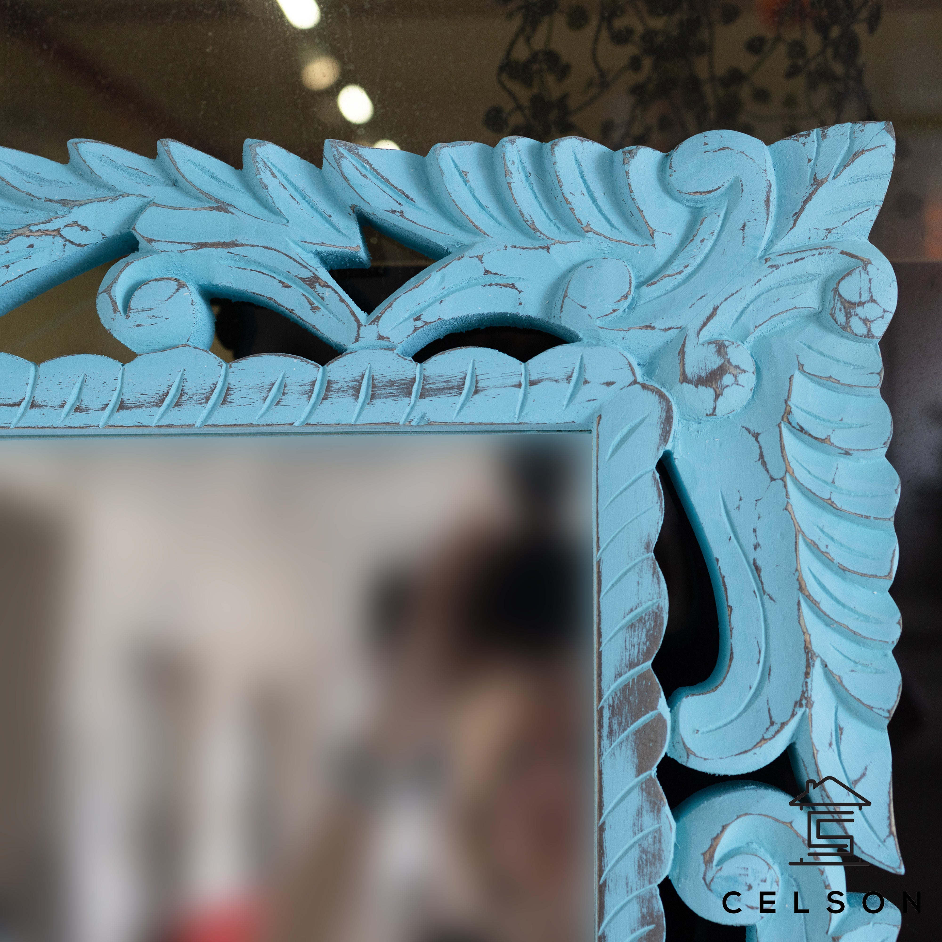 A beautiful mirror that suits any space, whether bold or understated. Finished with a classic distressed look and equipped with metal hooks for easy hanging.