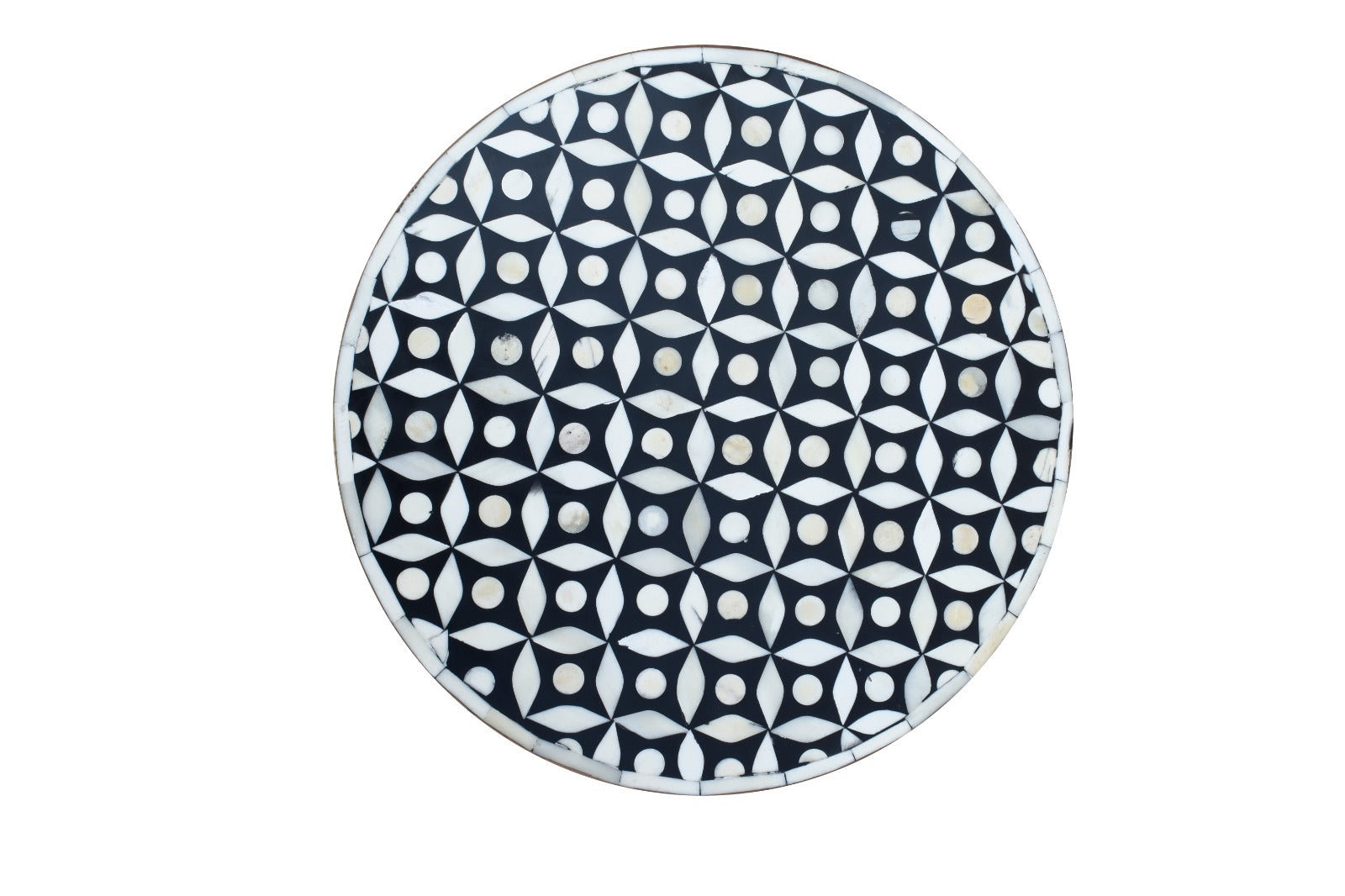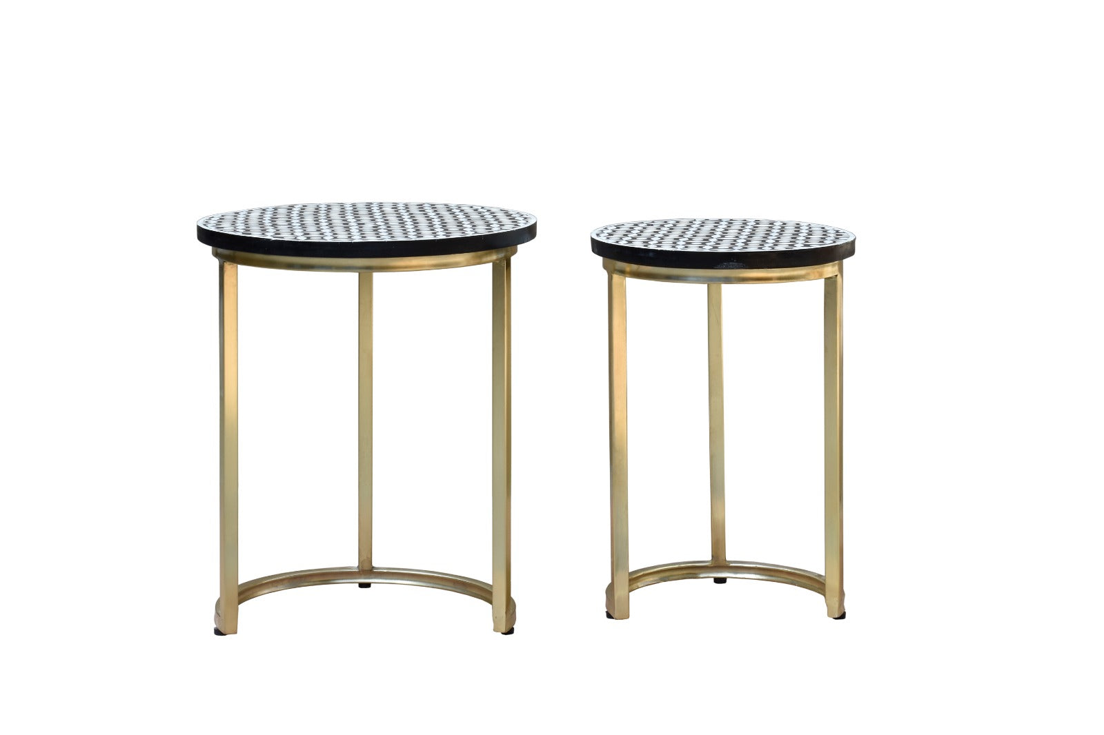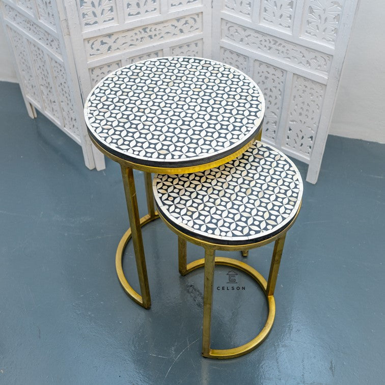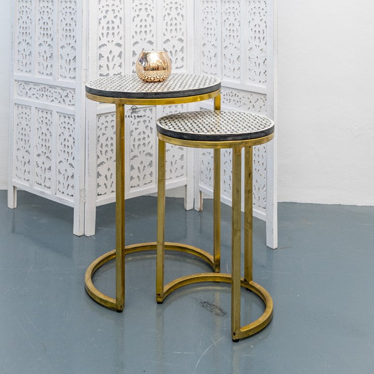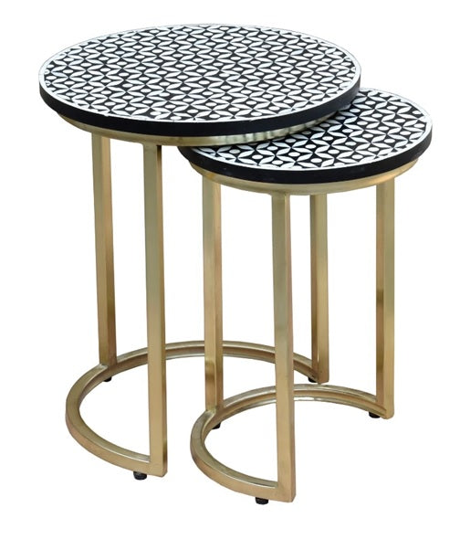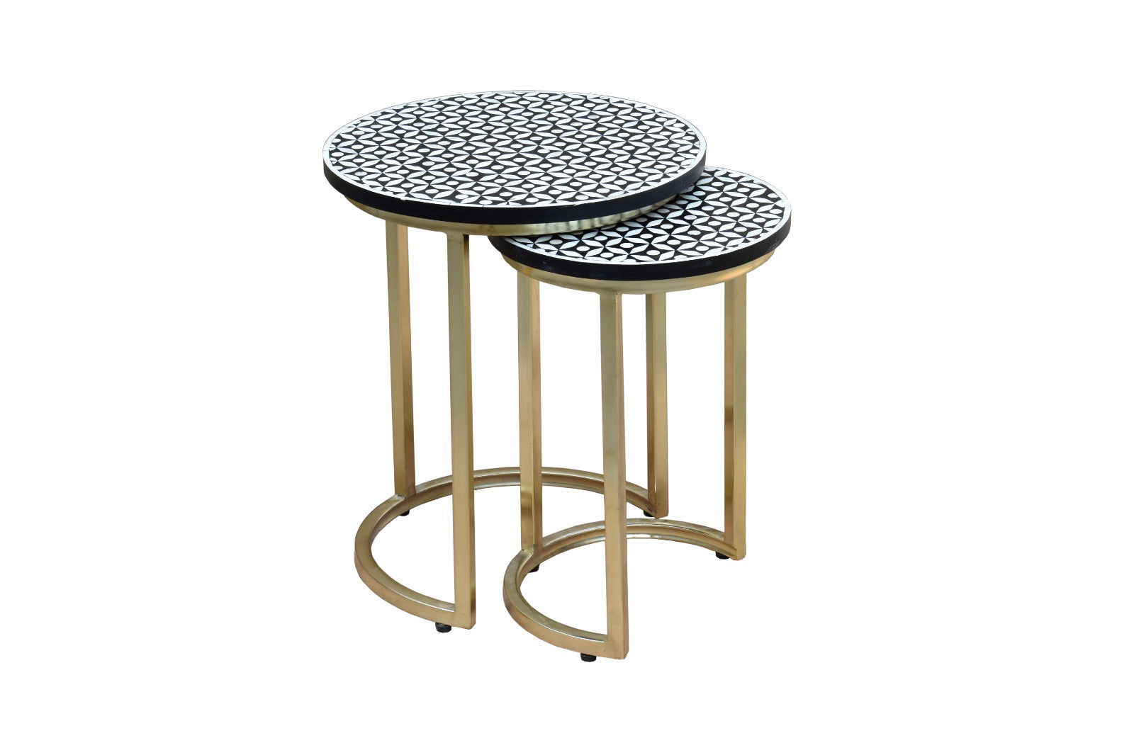 This set comes with a geometric pattern bone inlay design on the table top & golden legs to add a touch of boldness!