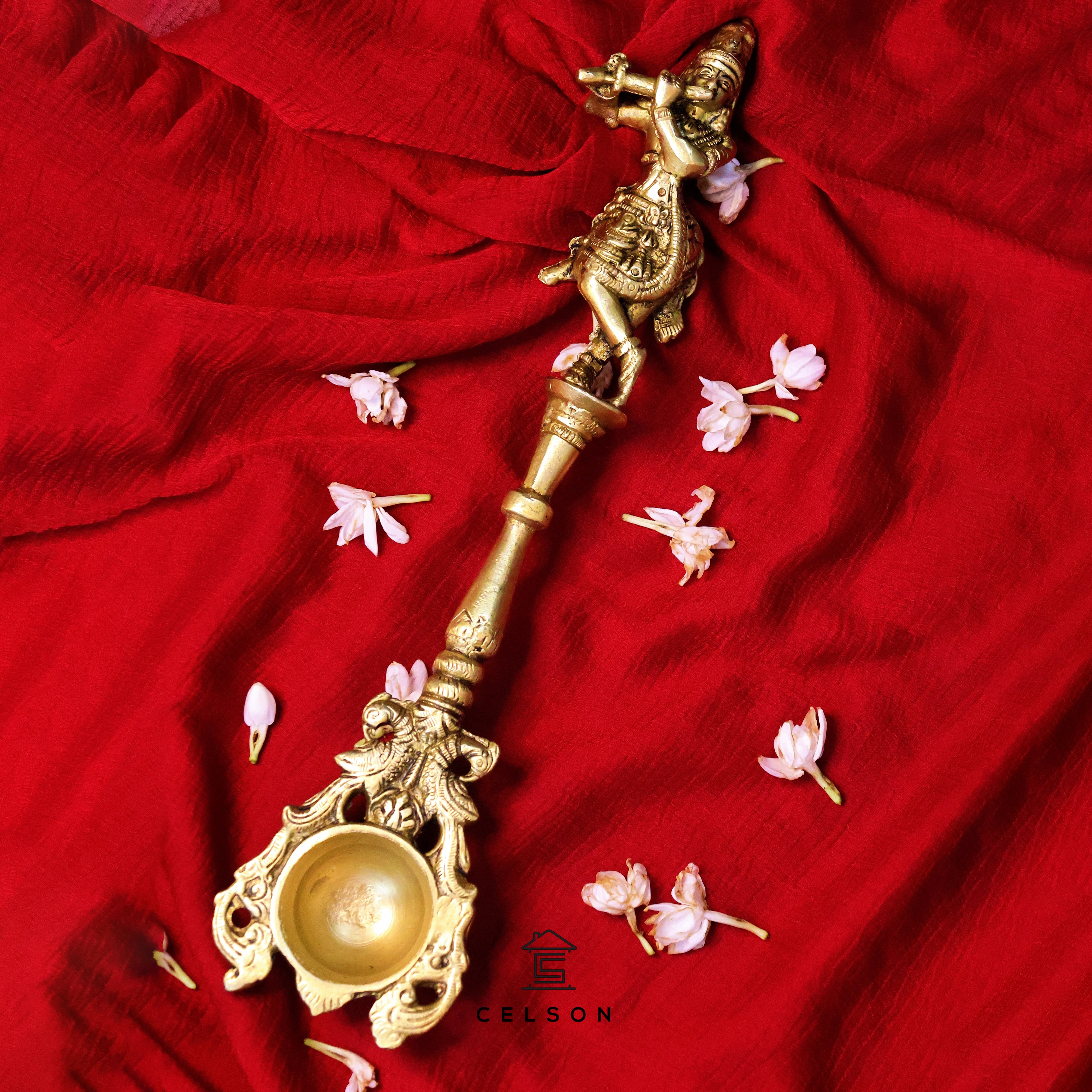 A symbol of light and divinity - Brass Krishna Aarti Diya for your sacred space