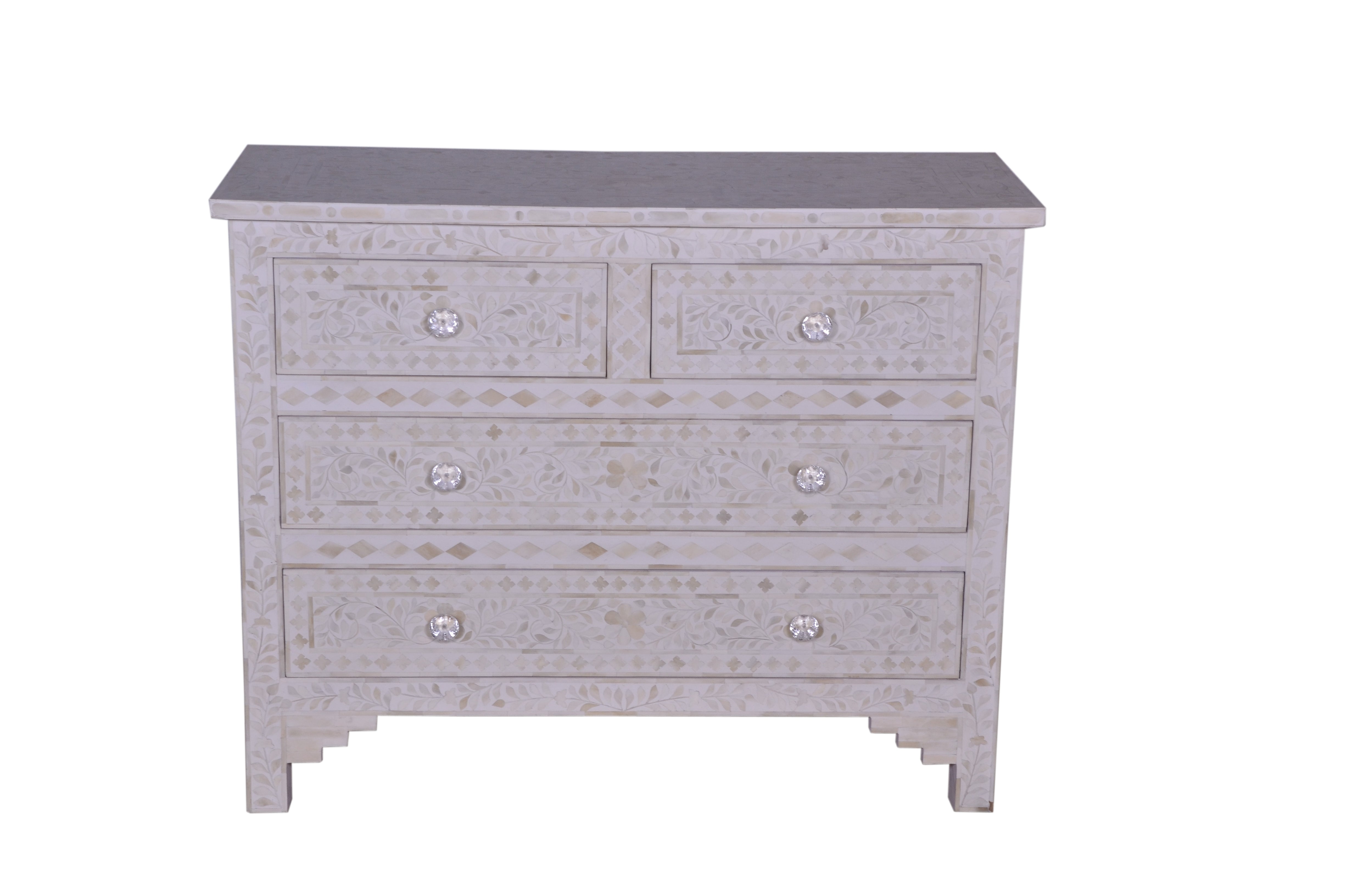 This bone inlay chest definitely makes it to the top of our favorite pieces list! Along with looking stunning it also provides a good amount of storage space with its 4 drawers!!