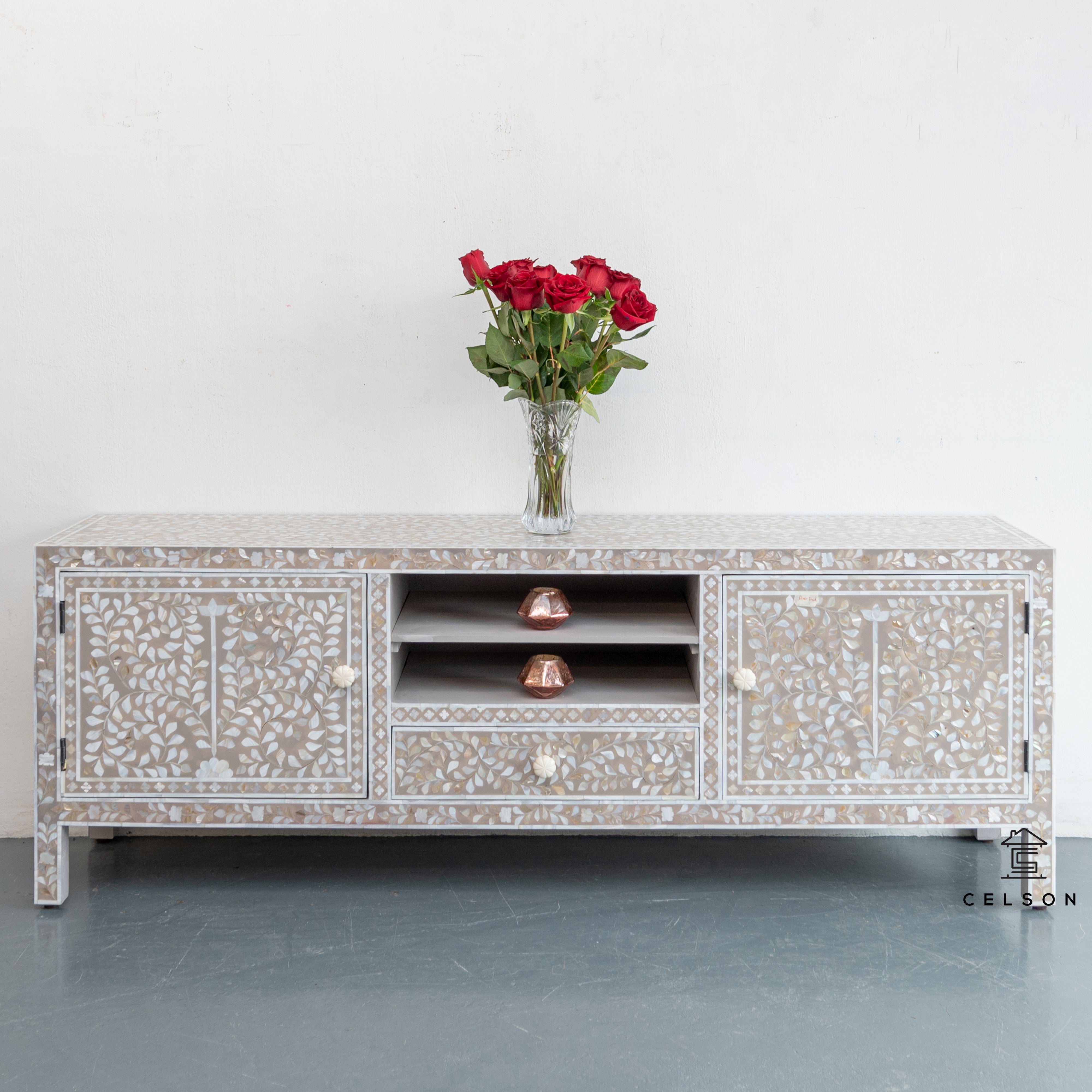 This Mother of pearl Inlay TV unit is just what the doctor ordered to brighten a gloomy day!