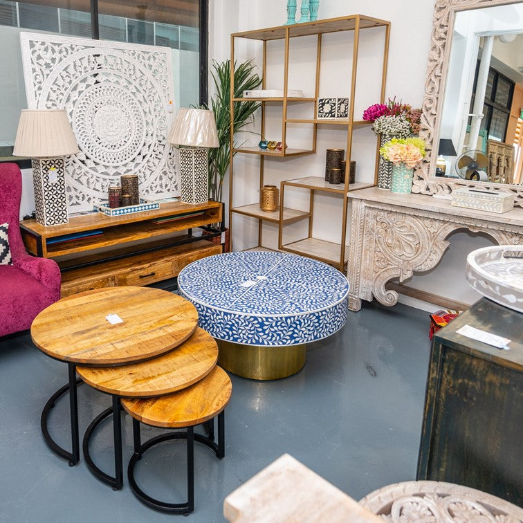 With a natural wood top & black iron legs, this set of nesting tables are perfect to use as everyday coffee tables or to use on special occasions.