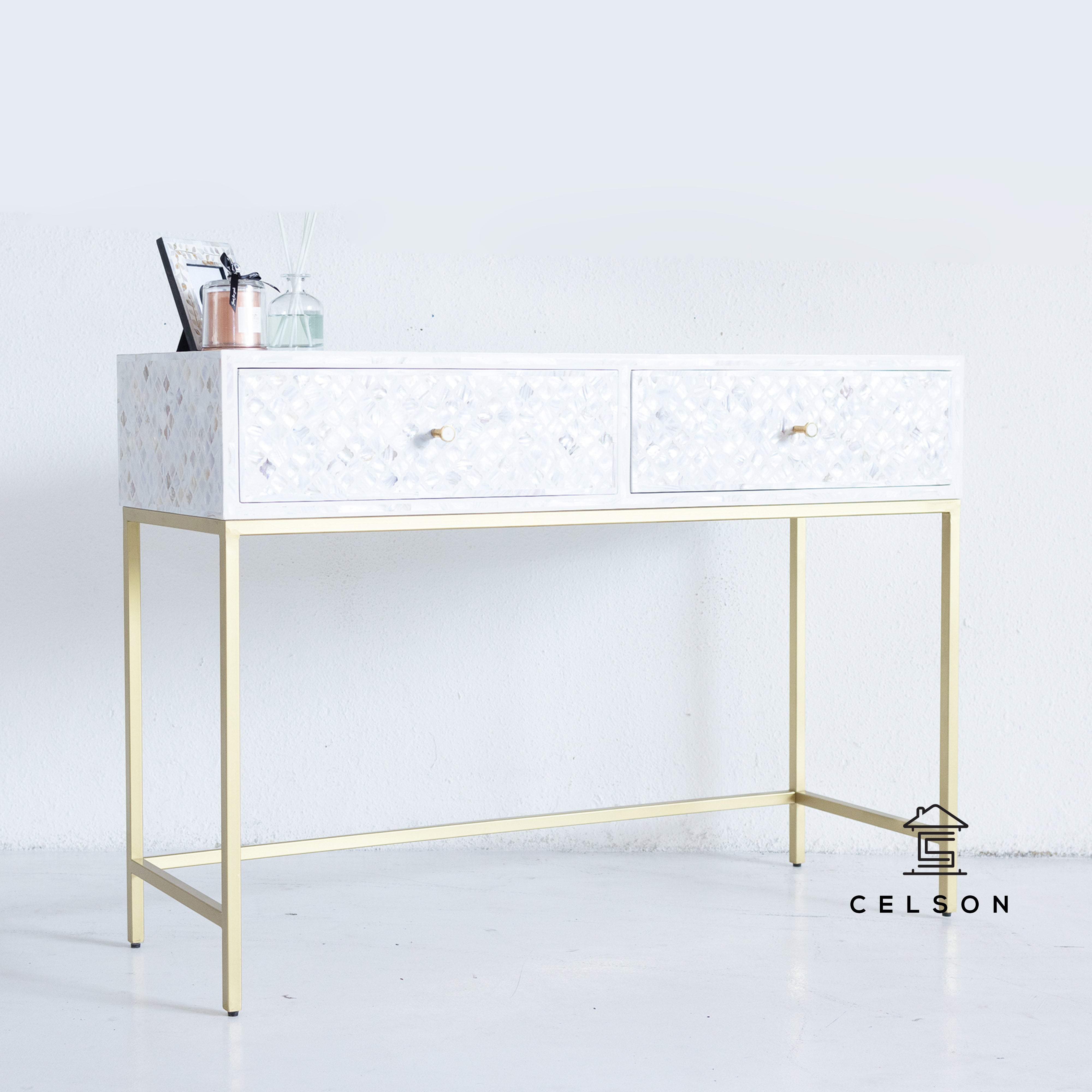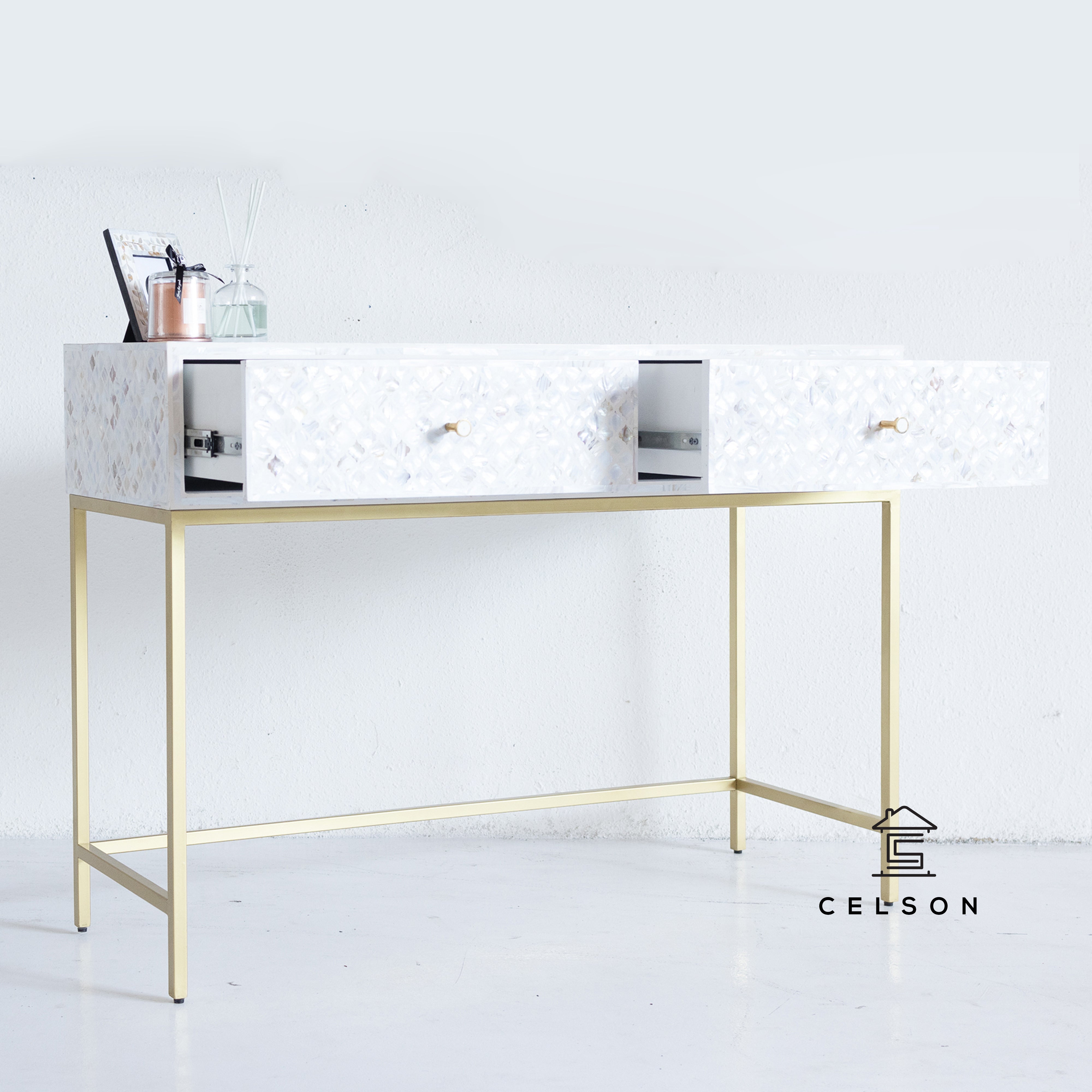 This 2 drawer Mother of Pearl Inlay console table is a client favourite!