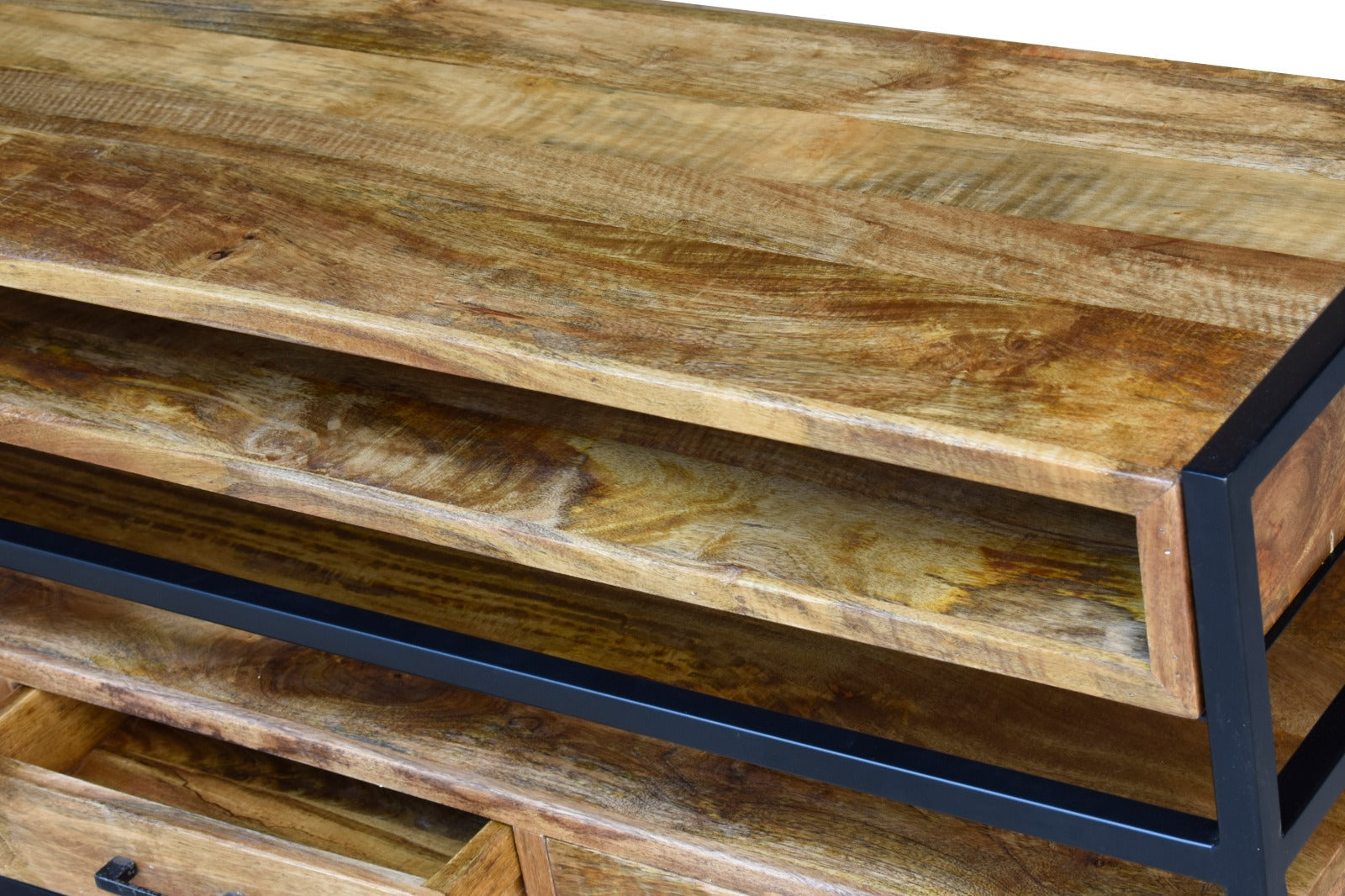 Our Industrial look TV unit can hold a ton of gadgets & products that you use regularly. This is made from solid mango wood and metal, which make it sturdy as well as gorgeous in look with being functional.