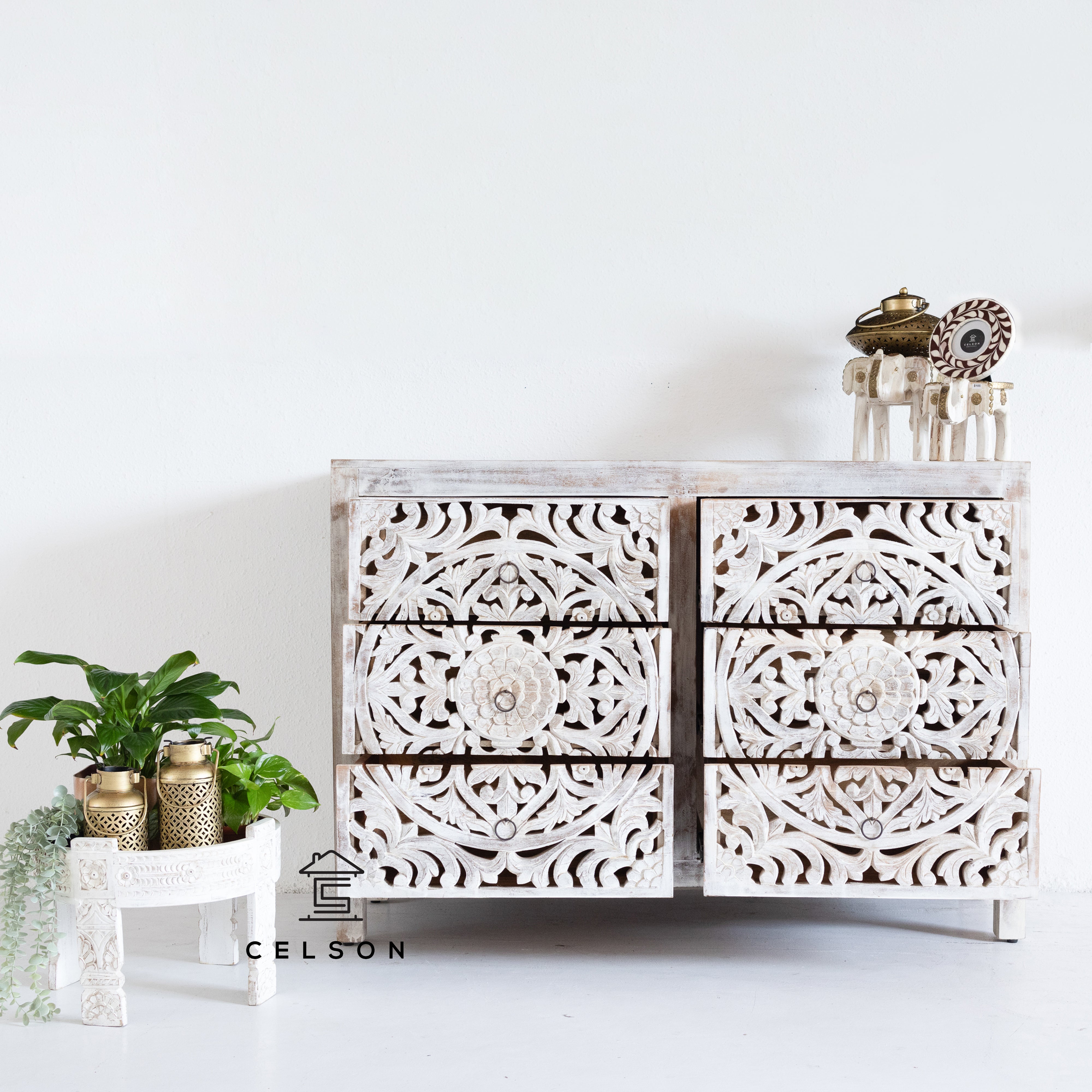 This hand carved beauty comes with six drawers and is perfect to store everyday bed & bath linen or be used as a kids toy’s storage