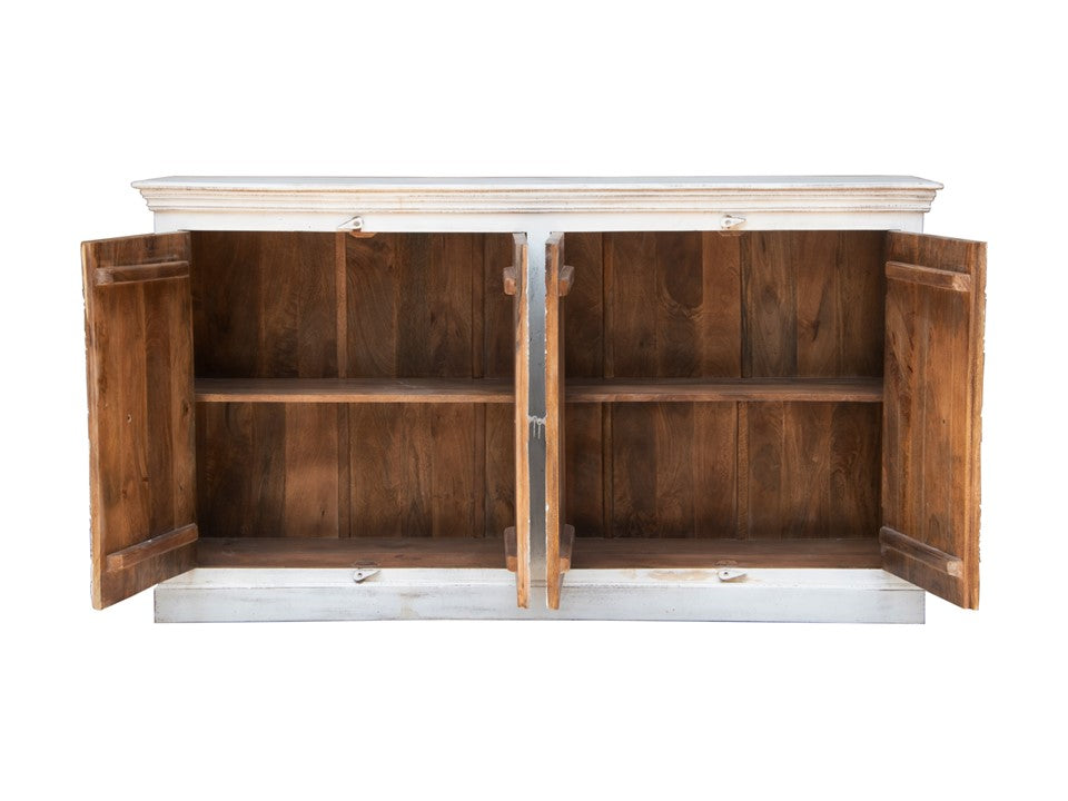 It comes with four doors in a lovely white washed finish perfect to get along with any existing decor.