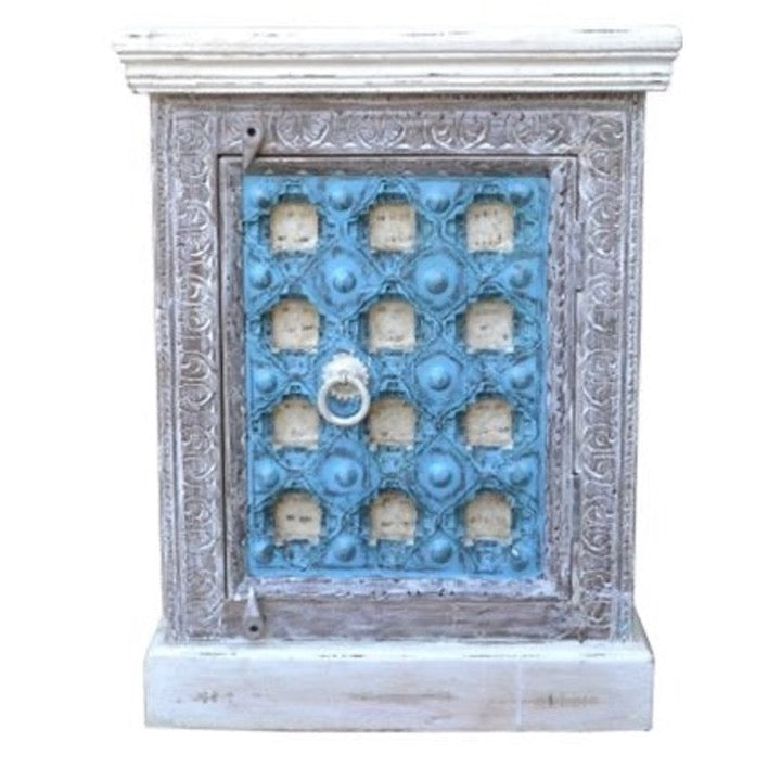Add to the beauty of your home with this hand carved bedside table which is ideal for any bedroom decor given its natural white/blue finish.