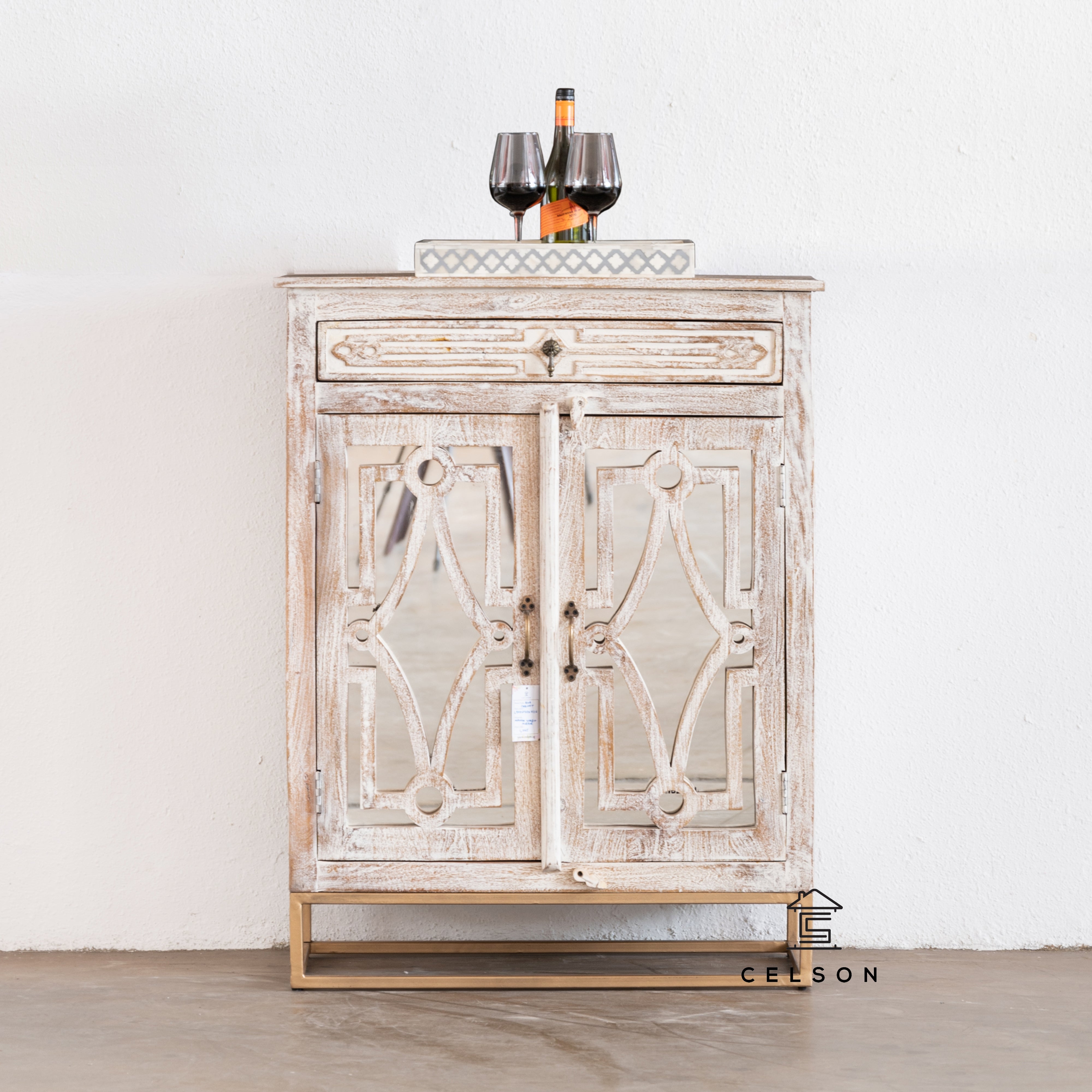 Our solid mango wood bar is the perfect home for all your wine bottles & more with  shelves & exteriors that are awe worthy.