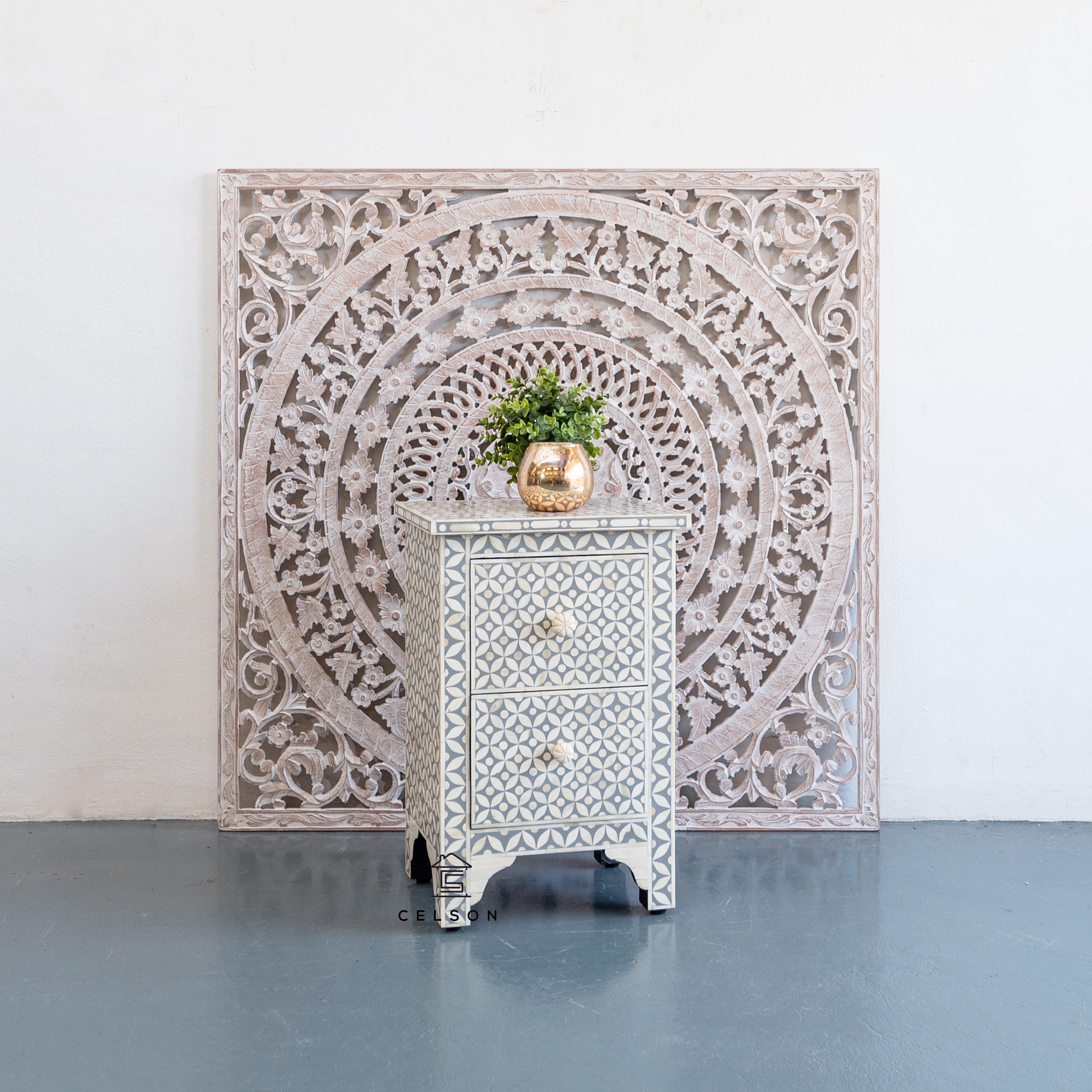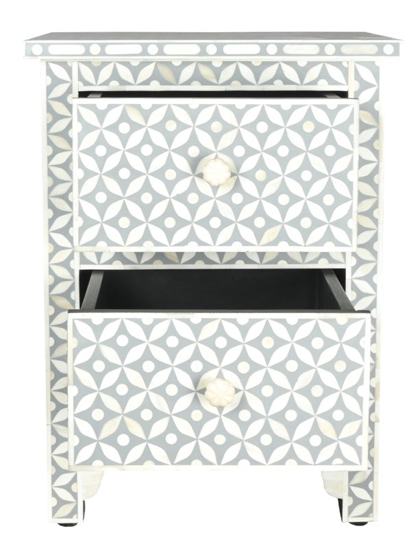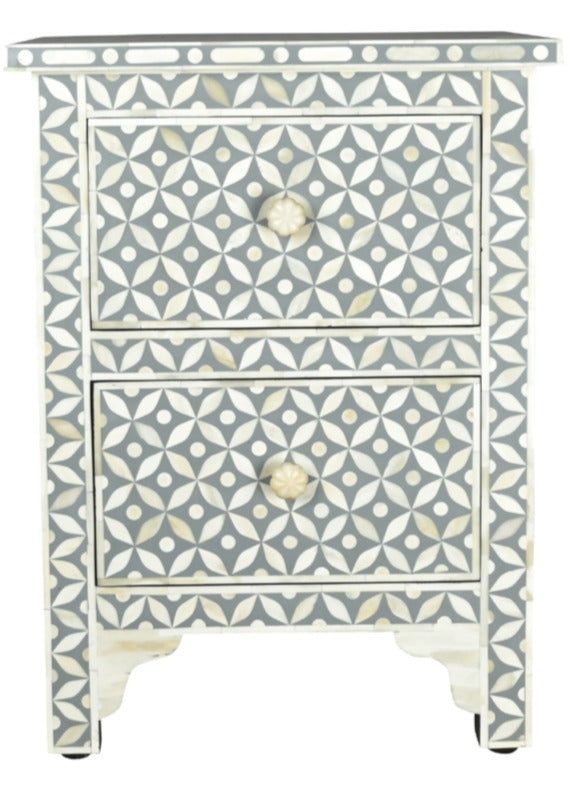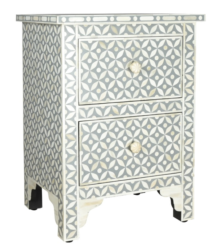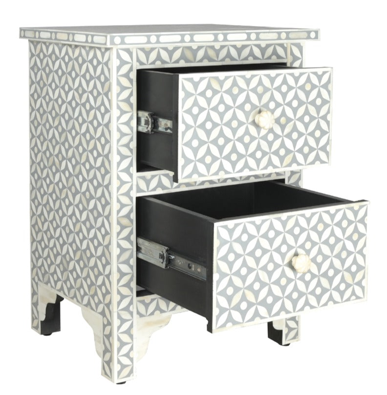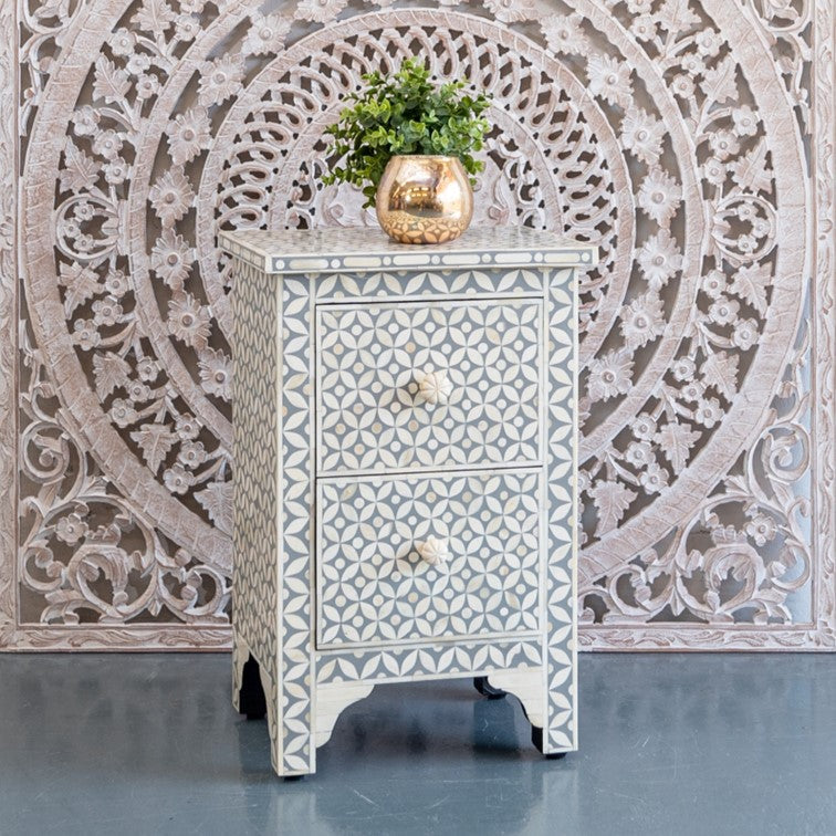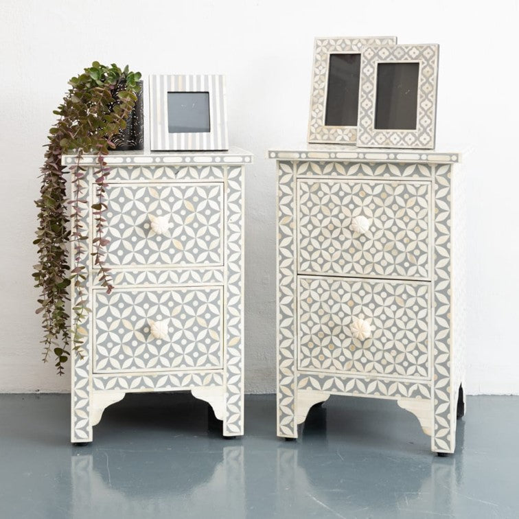 This gorgeous bone inlay bed side table can completely change the look of your room. They’re geometric in pattern, which makes it super easy to match them with your existing decor and they come with two drawers for your night time essentials.