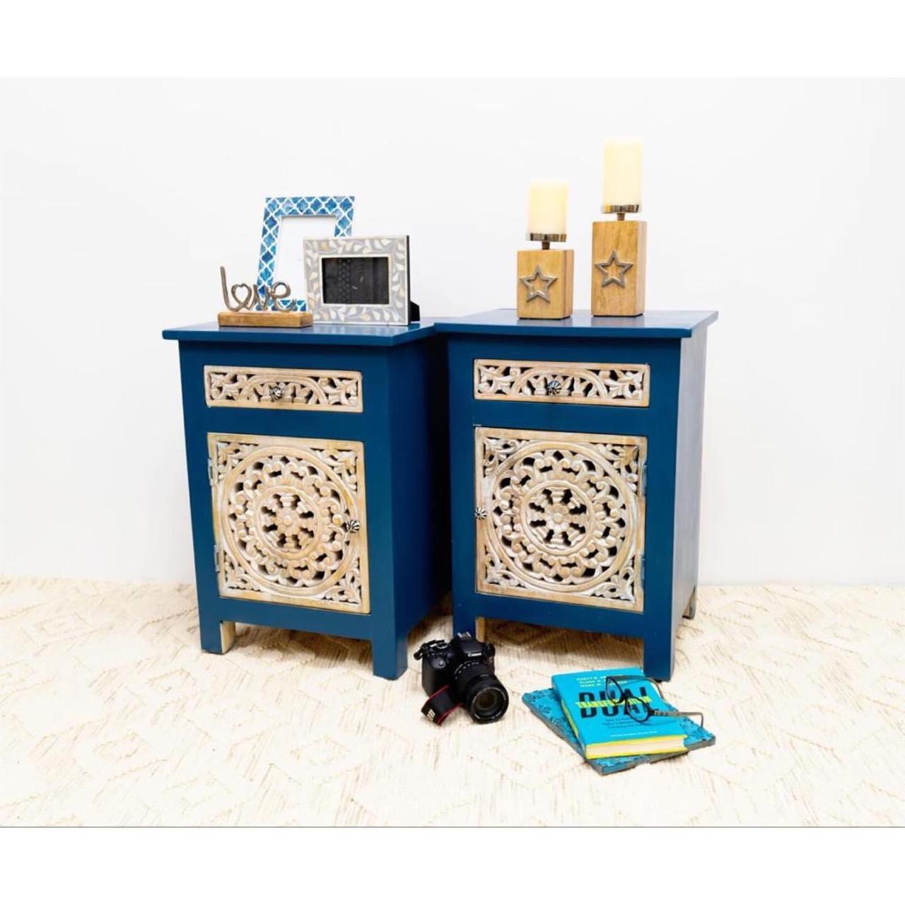 A bed side table that will not only fulfill your need of keeping small items in it but also look like a dream! With white and blue color combination in mango wood, it’s sure to stand out in any room!