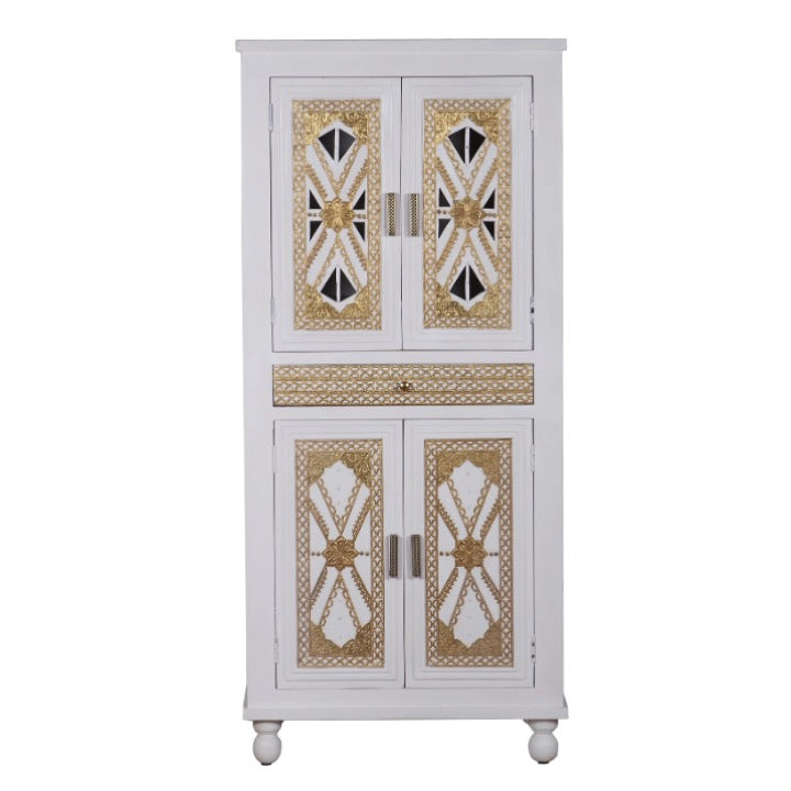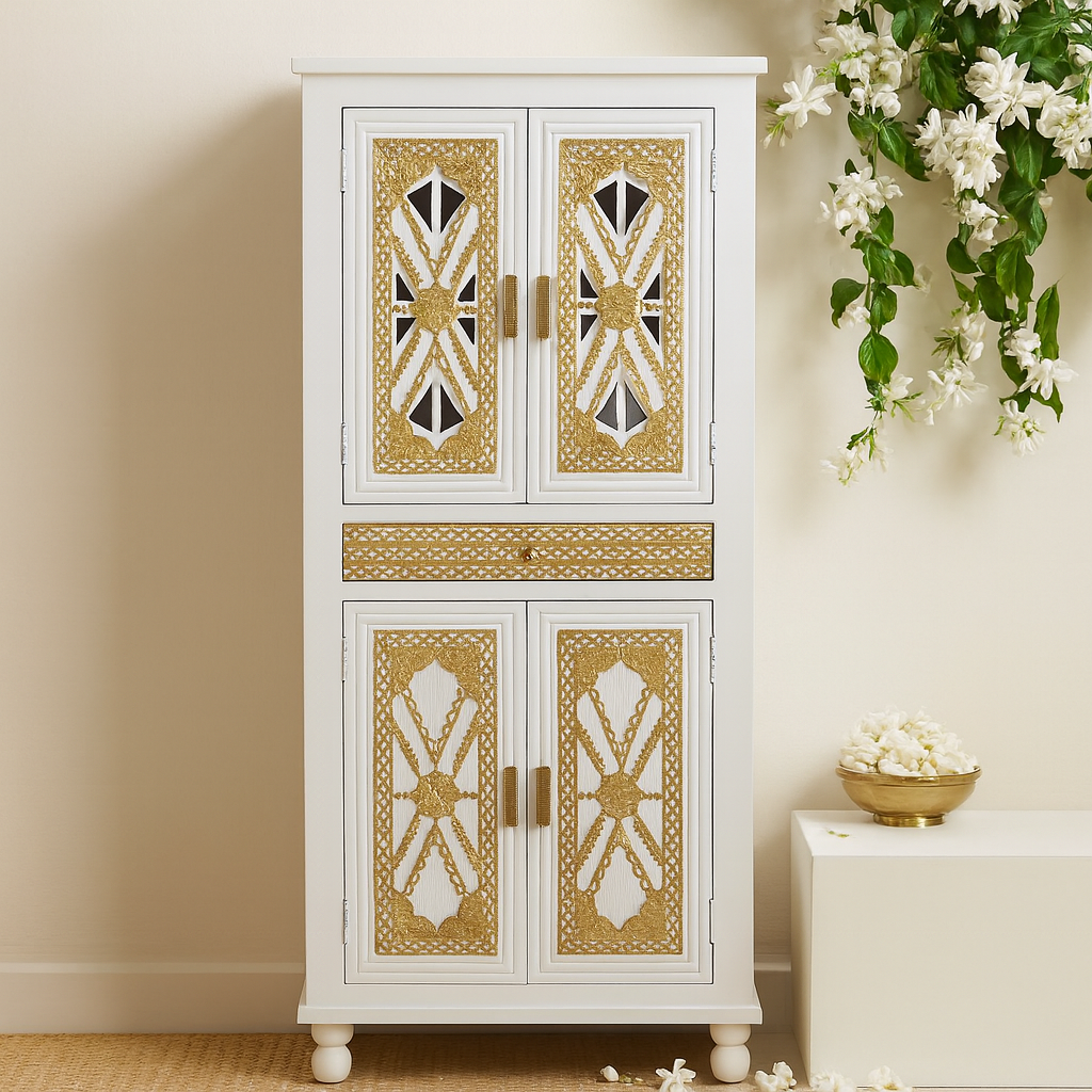 A sacred space handcrafted with care - this wooden altar features intricate brass fittings on the doors, blending devotion with timeless detail.