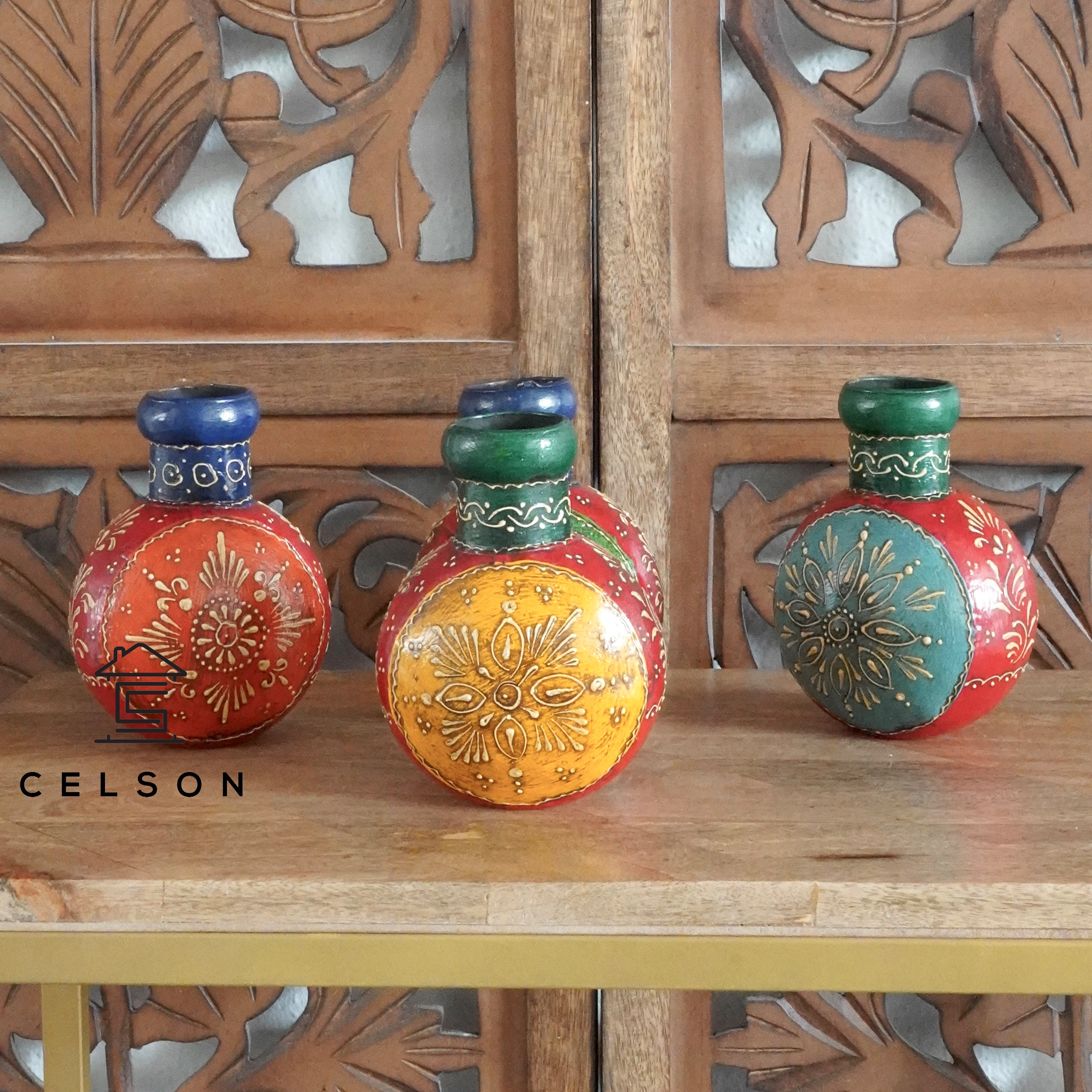 Whether you like to decorate your home with fresh showers or artificial ones, these wooden hand painted vases would be perfect to hold them!