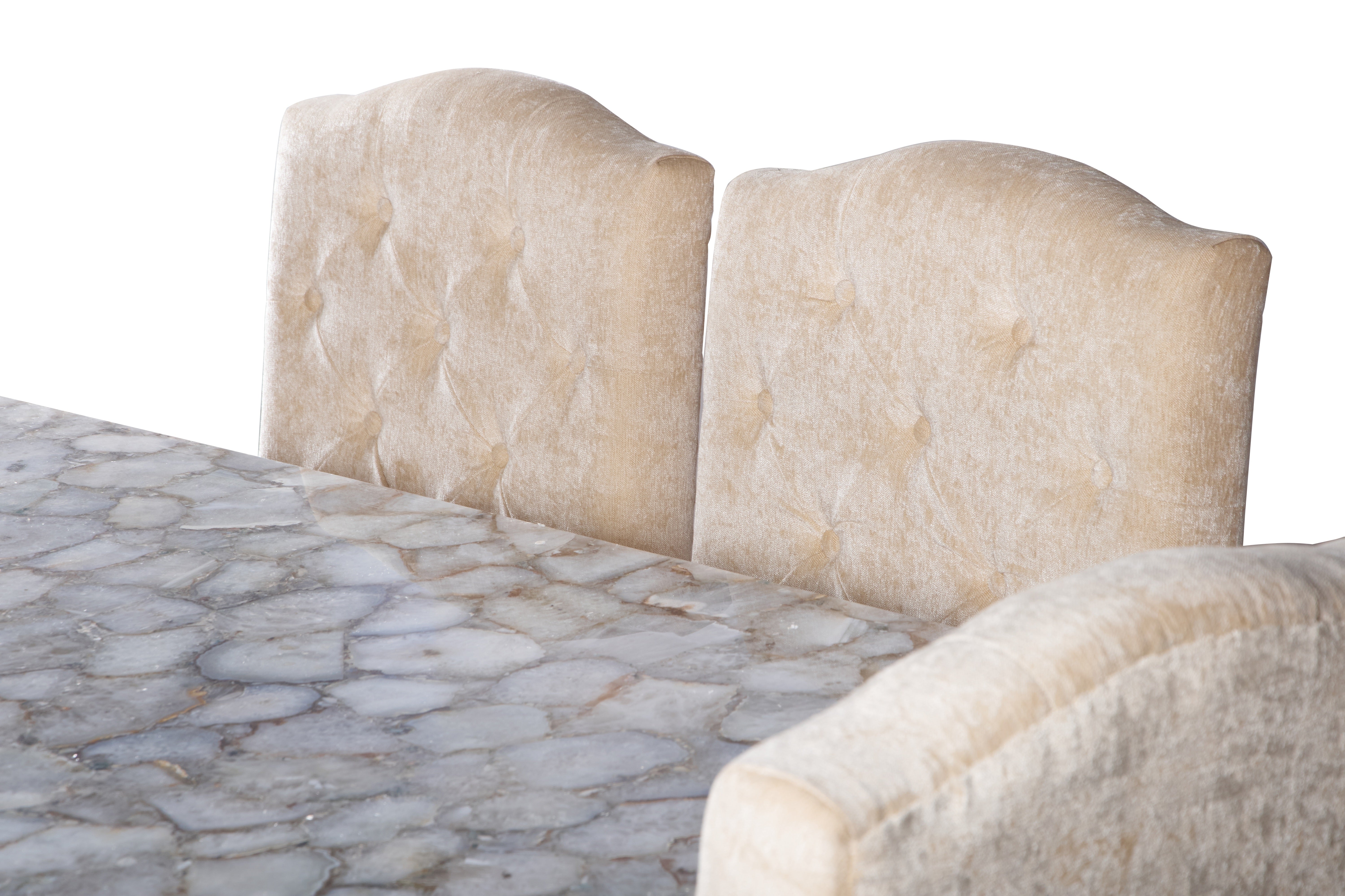 Elevate your dining experience with the exquisite beauty of this agate top dining table, featuring intricately carved legs for a touch of timeless elegance. Each piece of agate is unique, making this table a stunning centerpiece for your home.