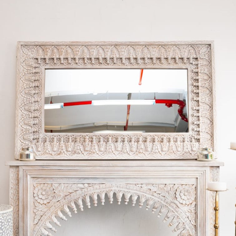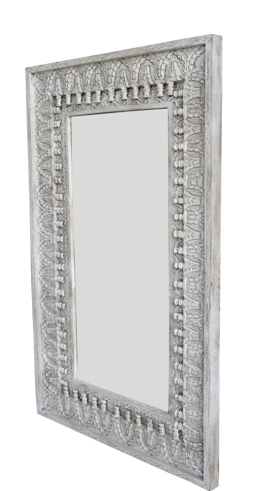 This gorgeous piece has a frame made with traditional Indian spindle design & has been finished in a distressed style to create a masterpiece!