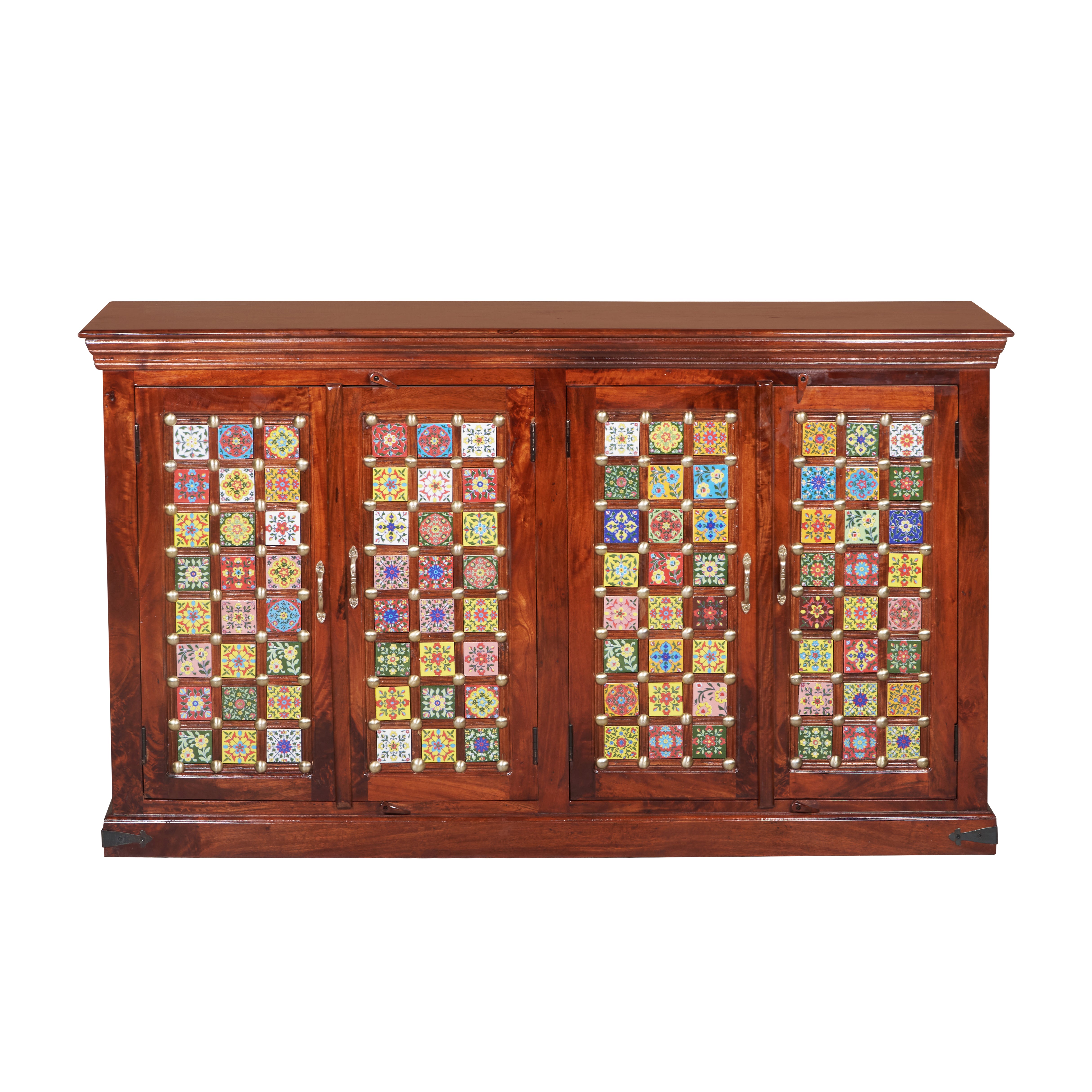 Featuring detailed hand carving and charming tile fittings, this solid-wood sideboard is designed to elevate both style and storage.