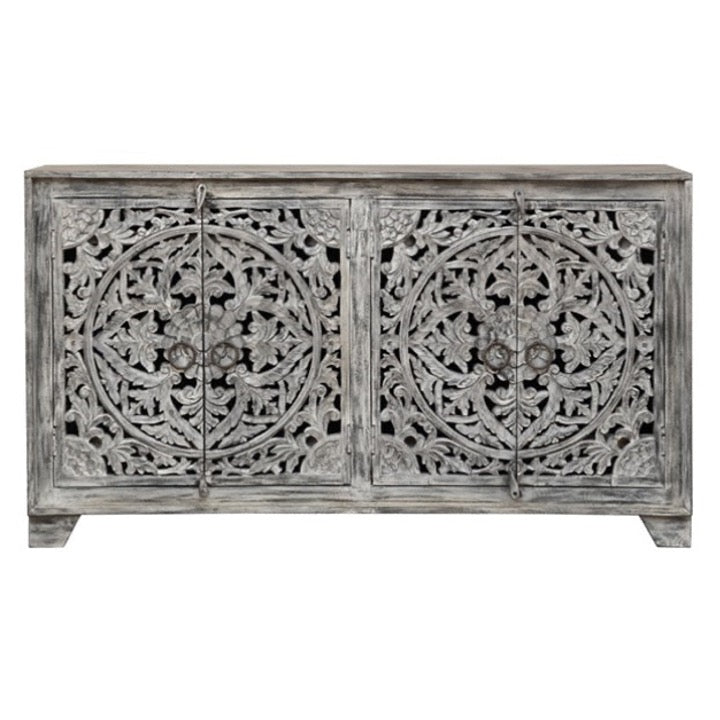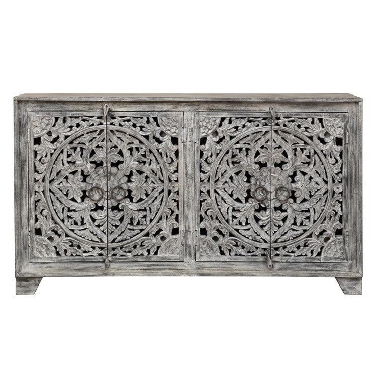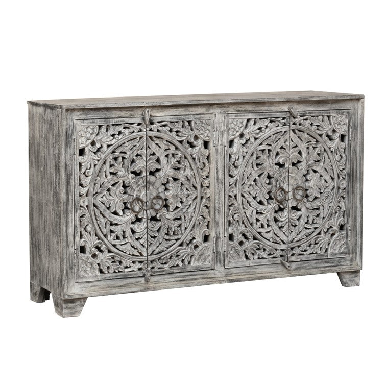 Carved and painted completely by hand, this gorgeous piece is profoundly versatile: It not only makes an ideal cabinet, but also provides statement-making storage in any room of your home.
