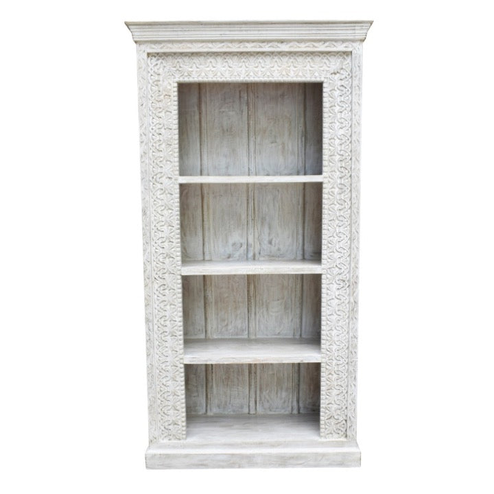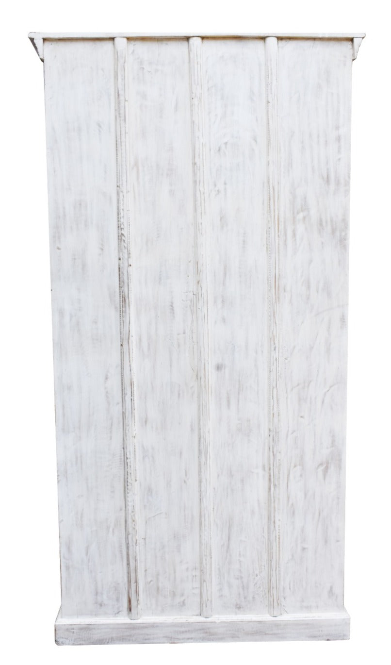 It has 3 shelves & a white washed  finish which make it a desirable piece!