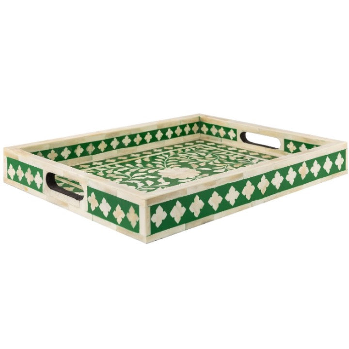 Whether it’s used to serve or used as a vanity tray or as a decorative tray on any counter top, a bone inlay tray never fails to come through!