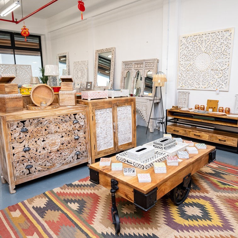 This hand carved beauty comes with three drawers and is perfect to store everyday bed & bath linen or be used as a kids toy’s storage.