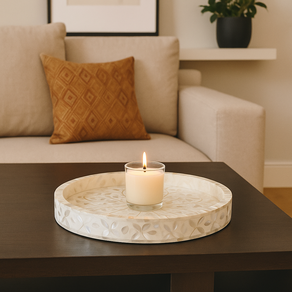 These lovely bone inlay trays are perfect to serve, to keep on any table with candles & decoratives, to use on your vanity table & so much more.