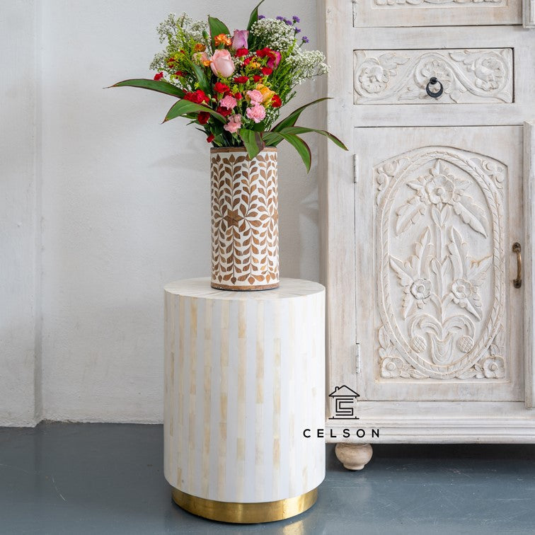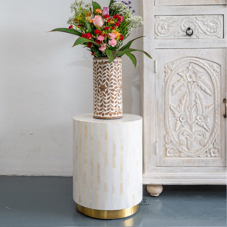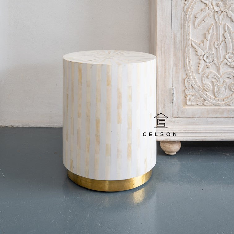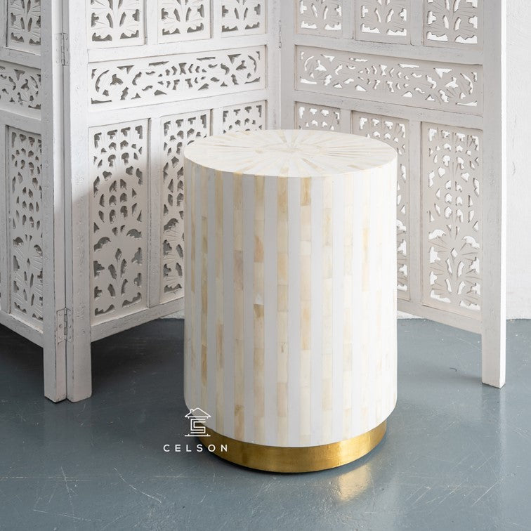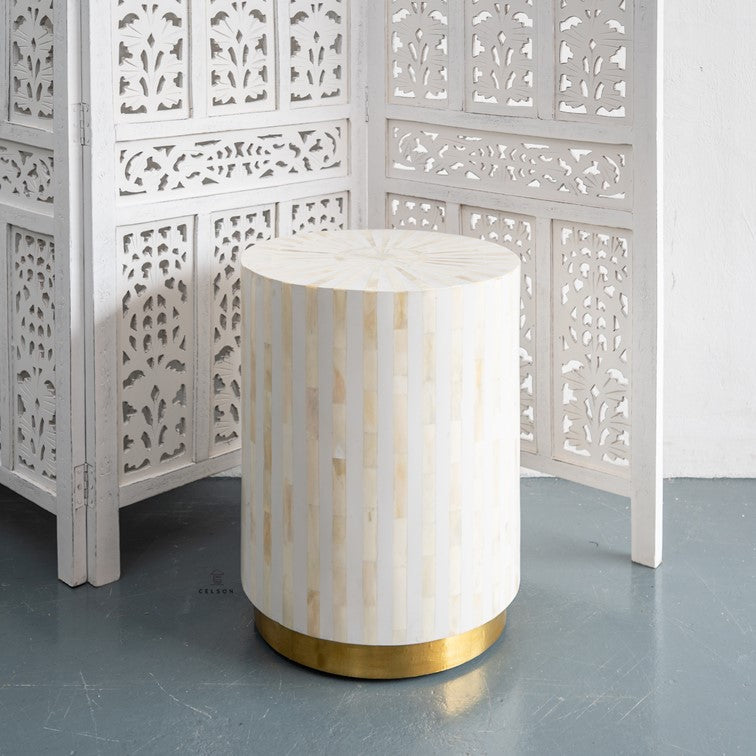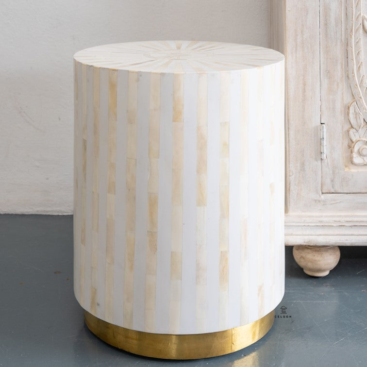This Bone Inlay stool can be used in multiple ways - as a bed side table, as an end table, as a coffee table, as a stool, as a bar seat and so much more!