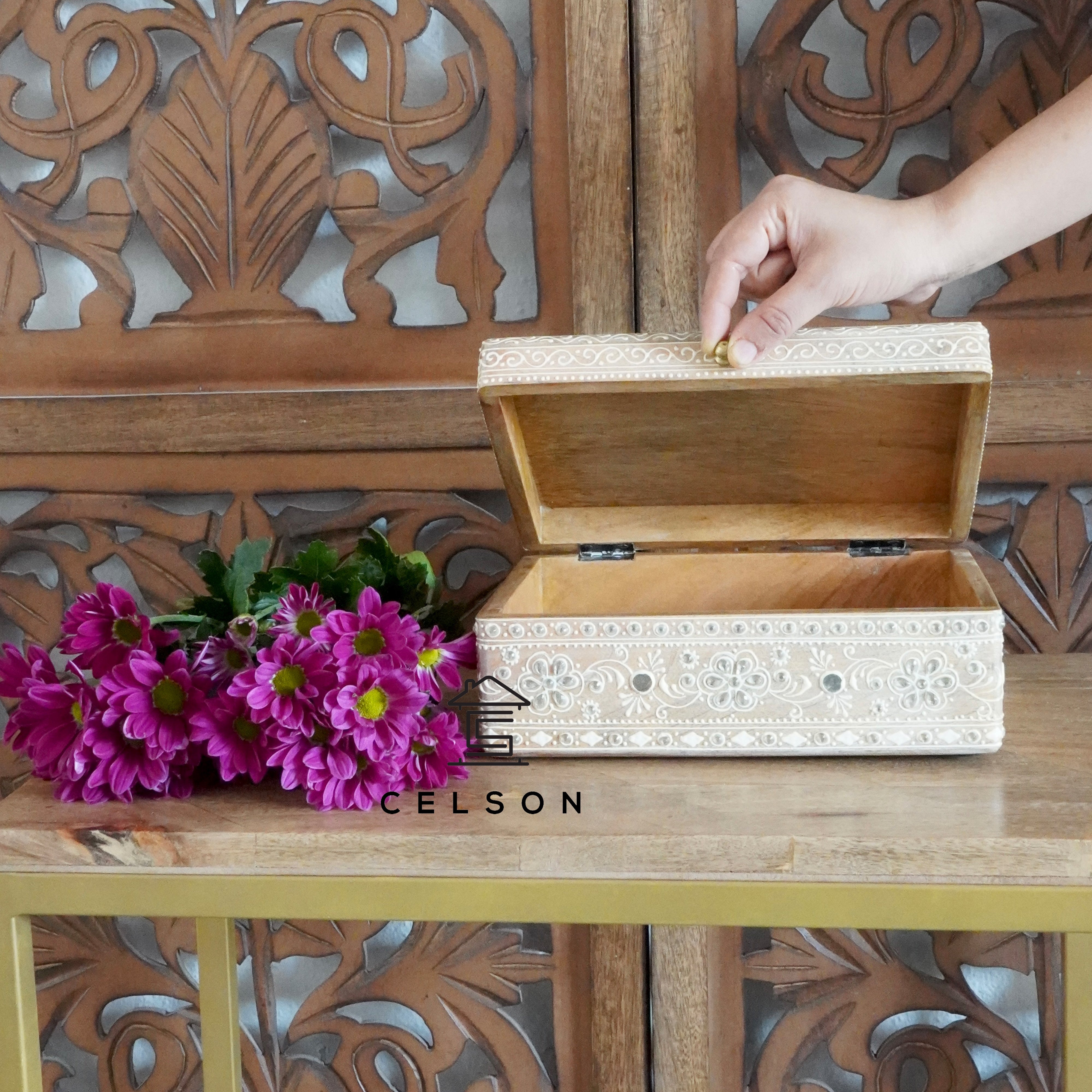 And these boxes will not only tidy up the space, they’ll also make it prettier with their natural colour & hand painted designs.