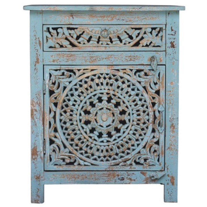 With Mango wood and rustic blue finish, it’s sure to stand out in any room!