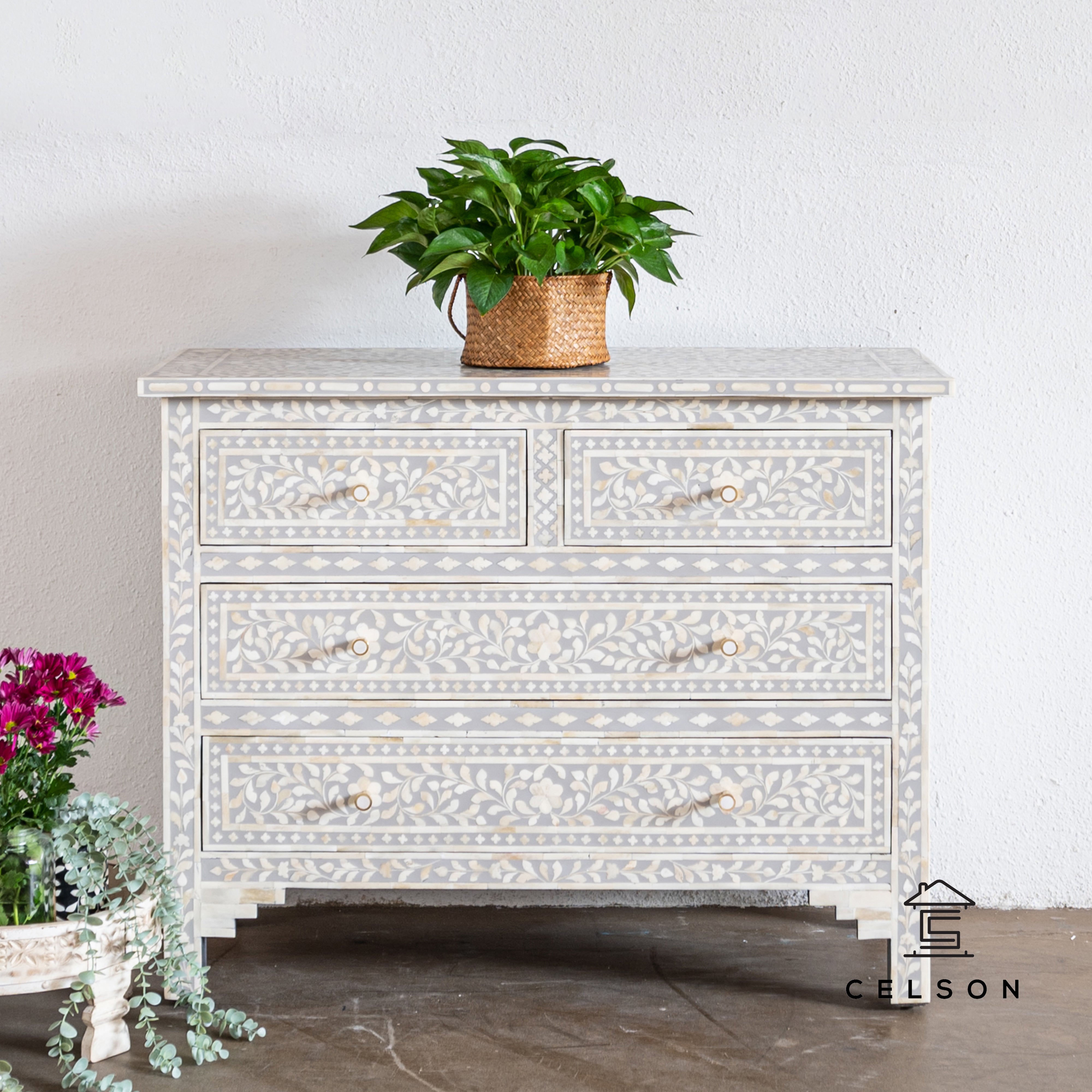 With its 4 drawers and gorgeous floral pattern, this beauty can be used in the  bedroom to stores clothes & accessories or in the living room to store all your extra gadgets, books and stationery.