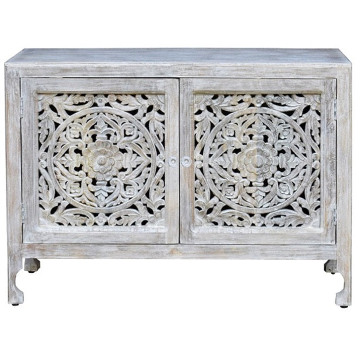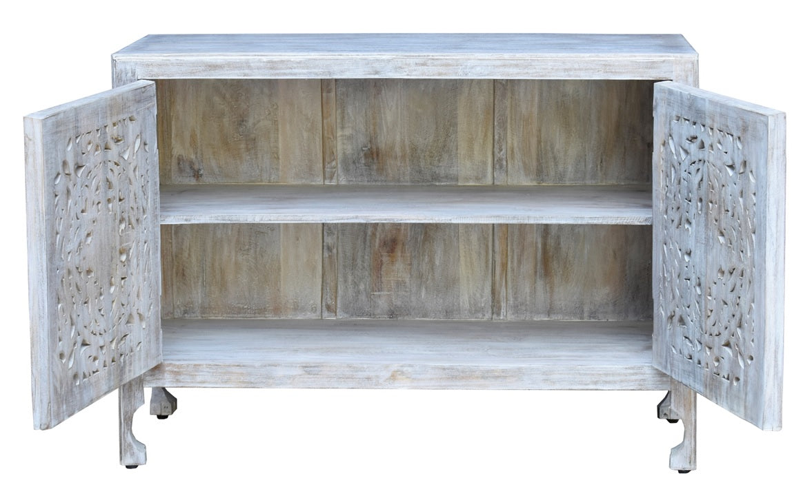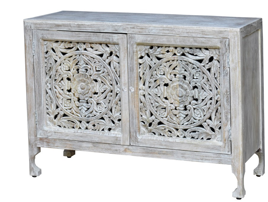 This hand carved beauty comes with 2 shelf inside and is perfect to store everyday bed & bath linen or be used as a kids toy’s storage.