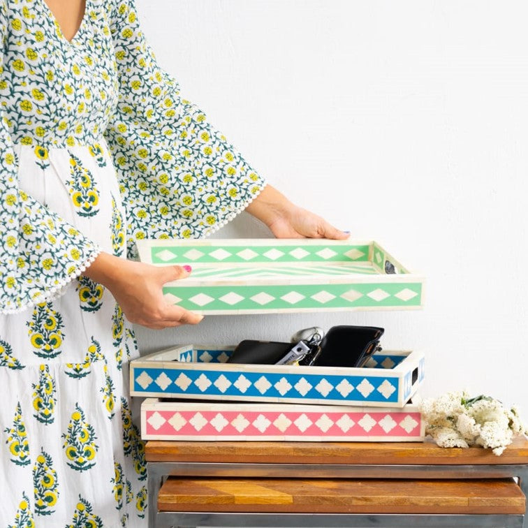 These lovely bone inlay trays are perfect to serve, to keep on any table with candles & decoratives, to use on your vanity table & so much more.