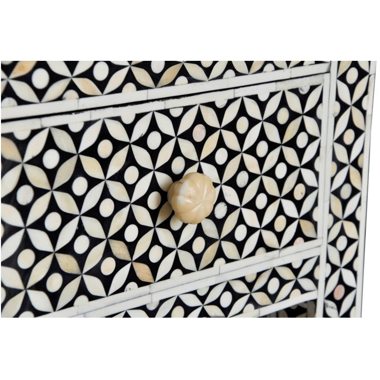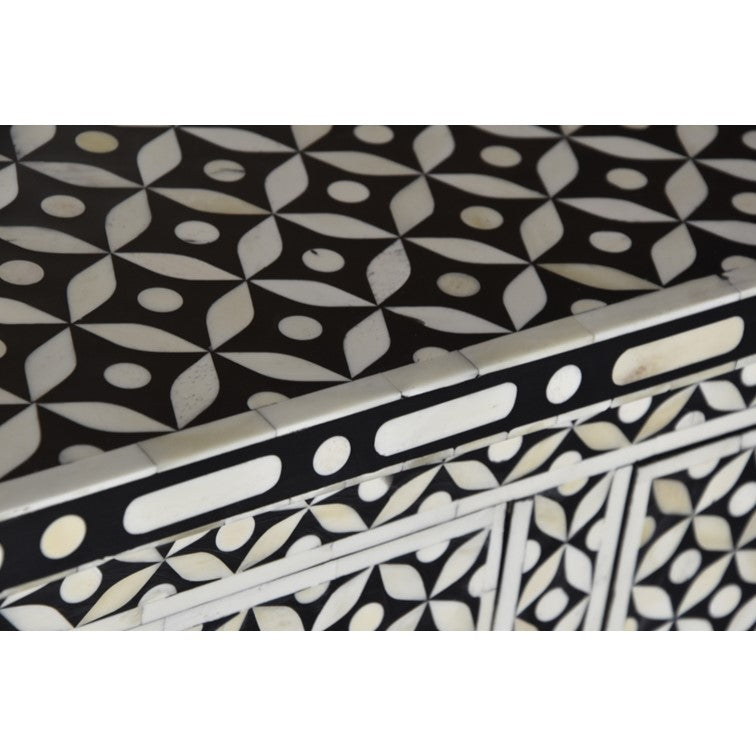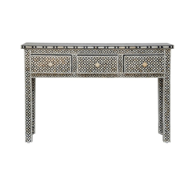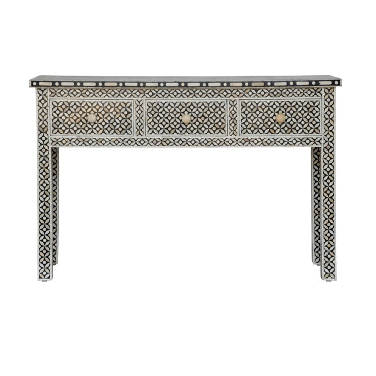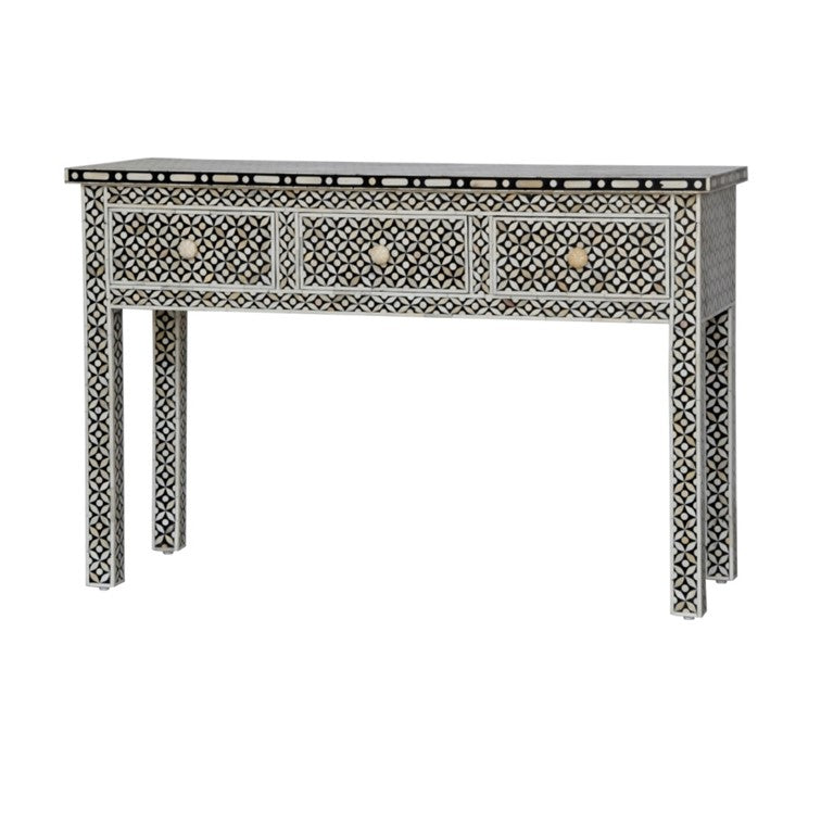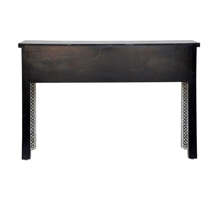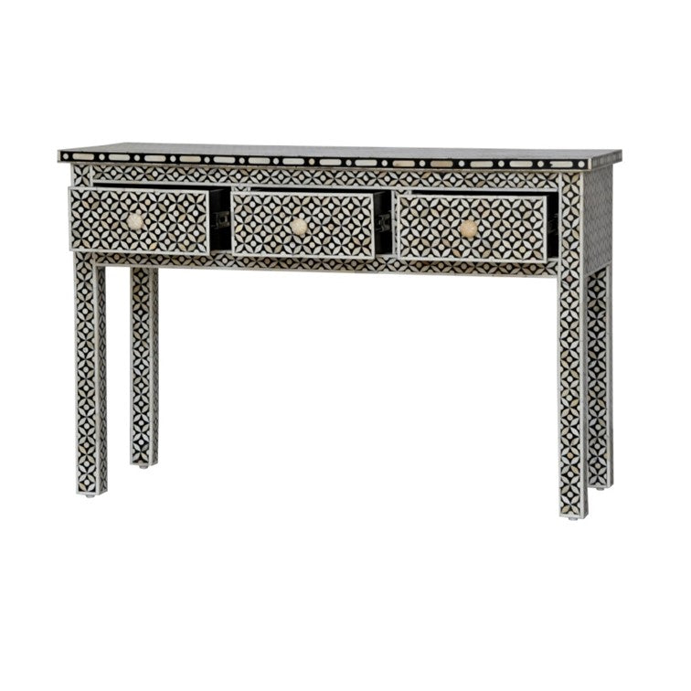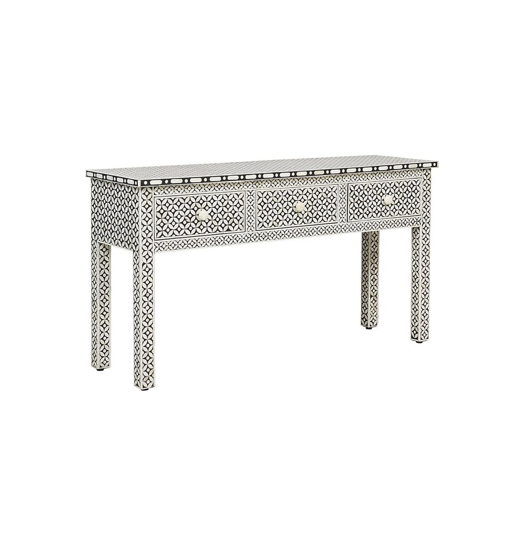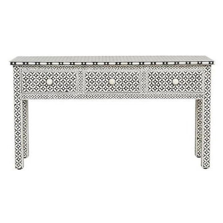This stunning black & white bone inlay console table is a piece right out of heaven!