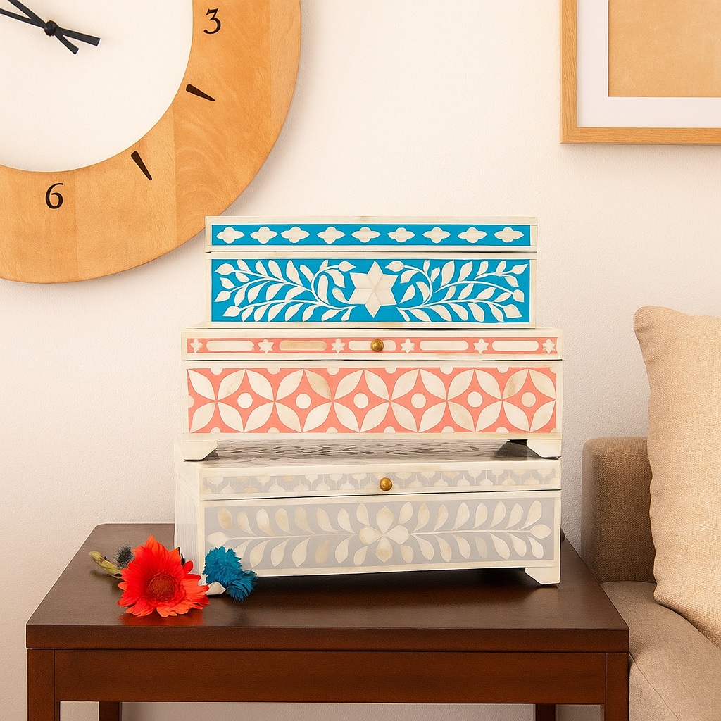 These boxes can be used in multiple ways - to keep everyday jewellery, to keep watches & wallets, to store sunglasses, to use as a tea box & much more.