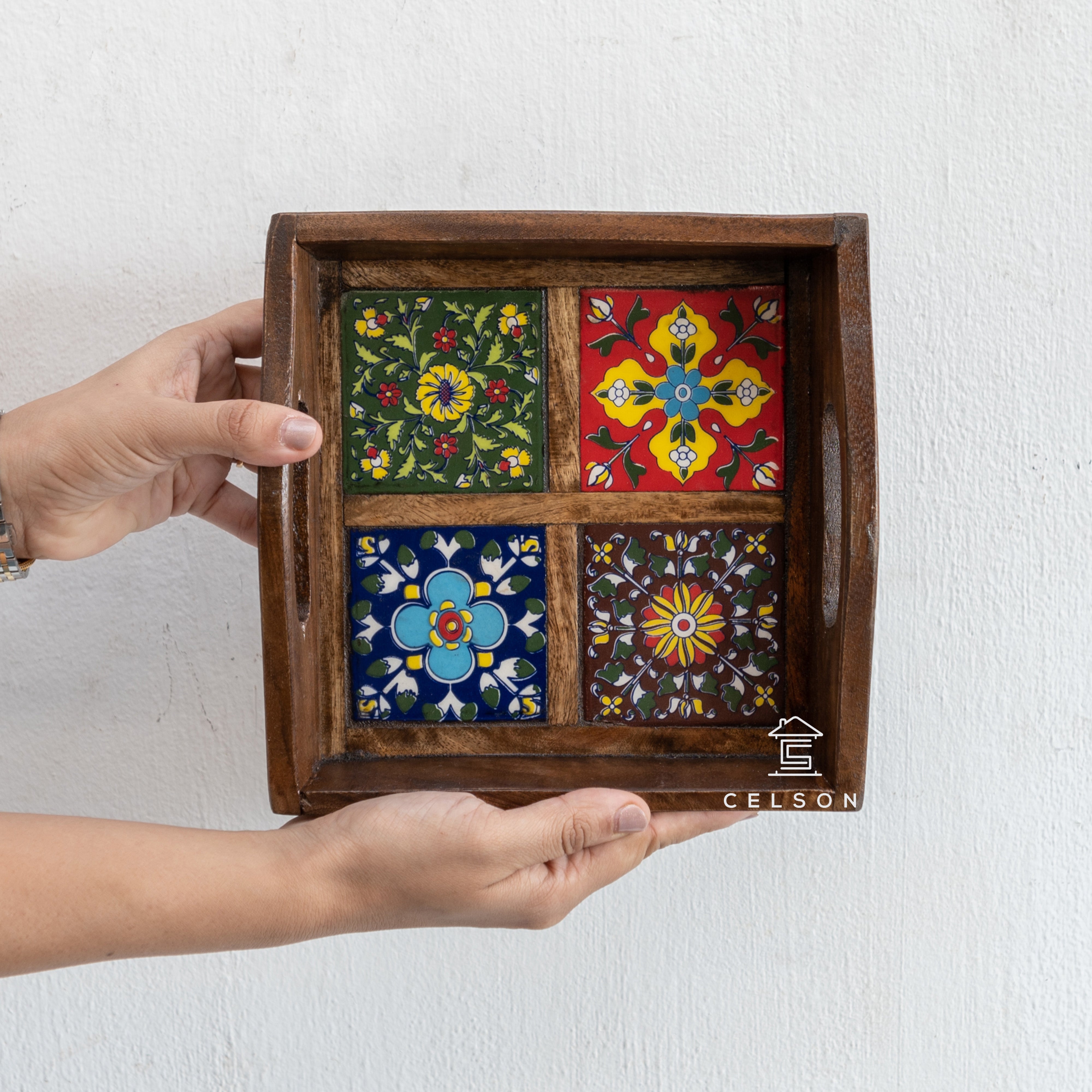 These lovely multi color tile trays are perfect to serve, to keep on any table with candles & decoratives, to use on your vanity table & so much more.