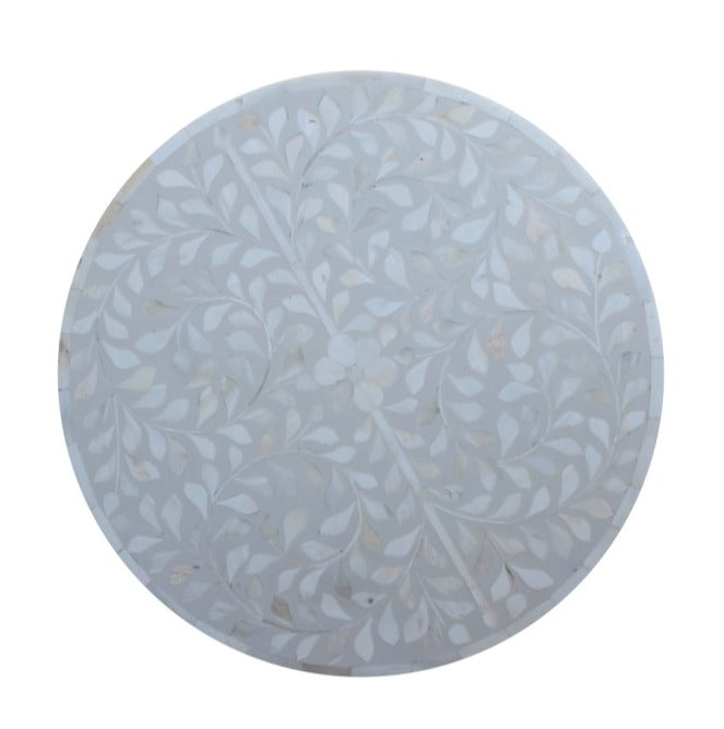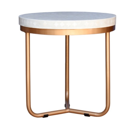 This lovely white bone inlay table is a perfect side table or an accent table to hold some family photos and essentials.