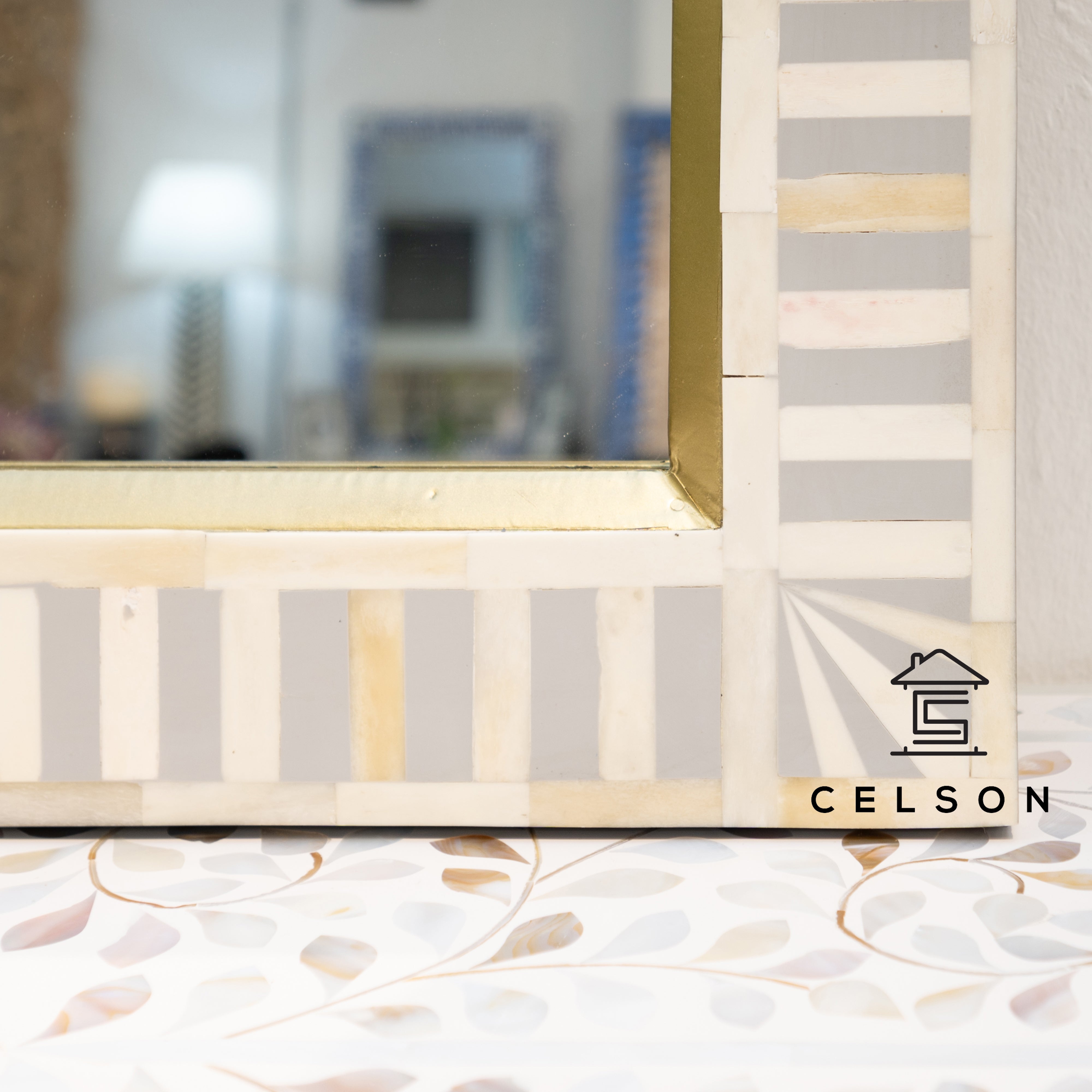 With a border that’s been inlaid with bone & finished in a grey colour, this mirror will add to the beauty of your home.