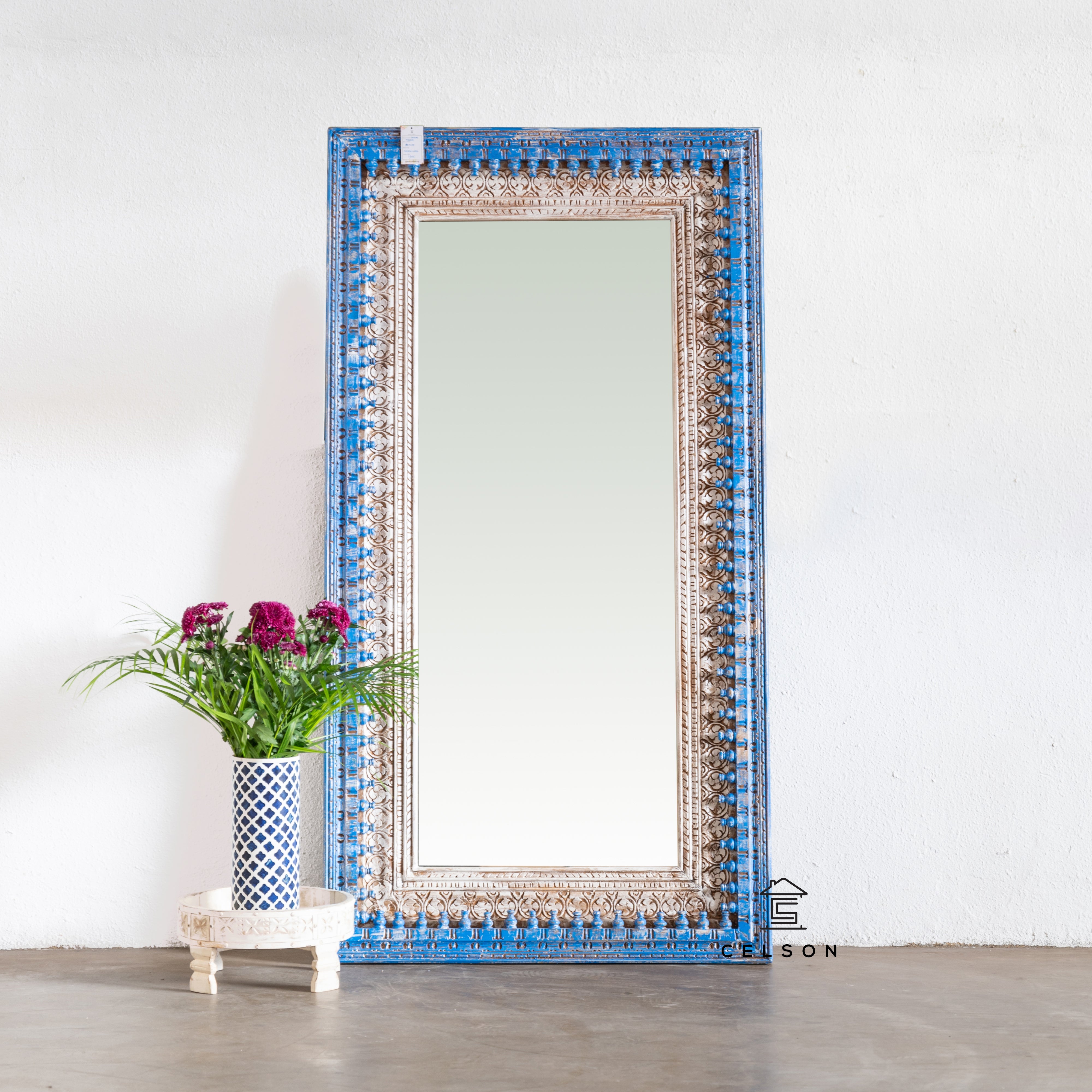 This gorgeous piece has a frame made with traditional Indian spindle design & has been finished in a distressed style to create a masterpiece!