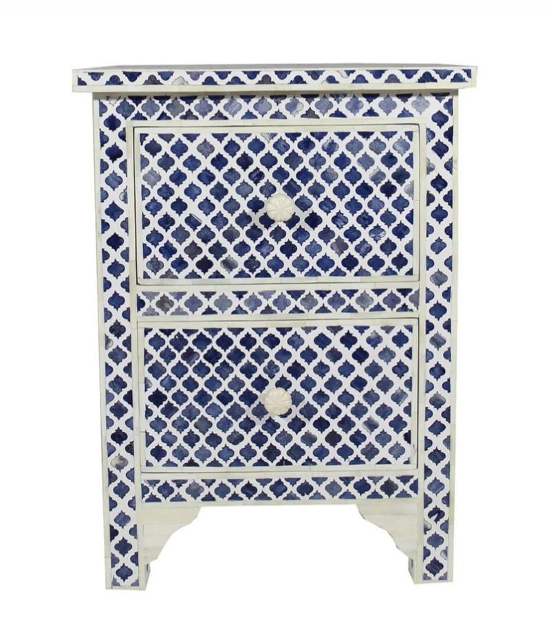 A bone inlay bed side table can completely transform the look & feel of any bedroom with its gorgeous pattern & colour.