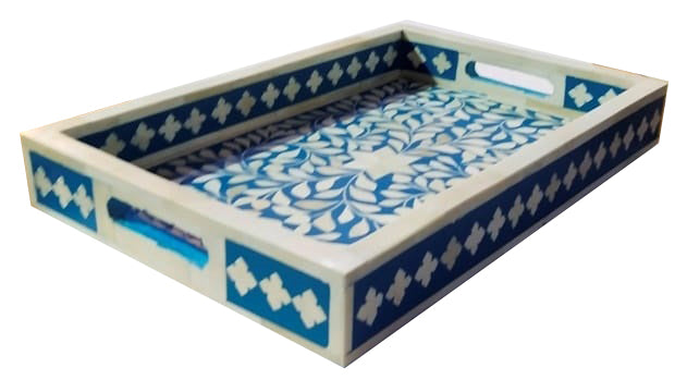 Lopez Bone Inlay Tray with Floral Pattern