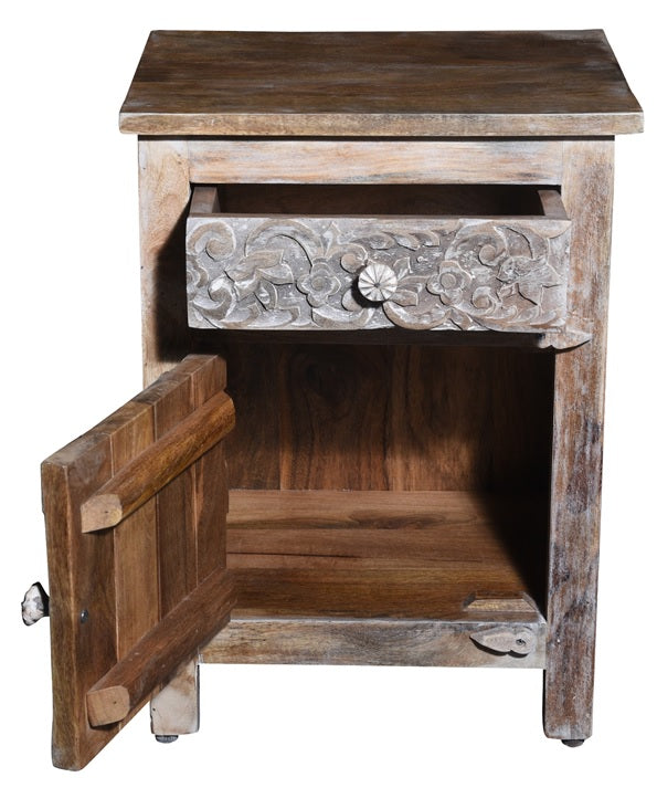 Add to the beauty of your home with this hand carved bedside table which is ideal for any bedroom decor given its natural finish.