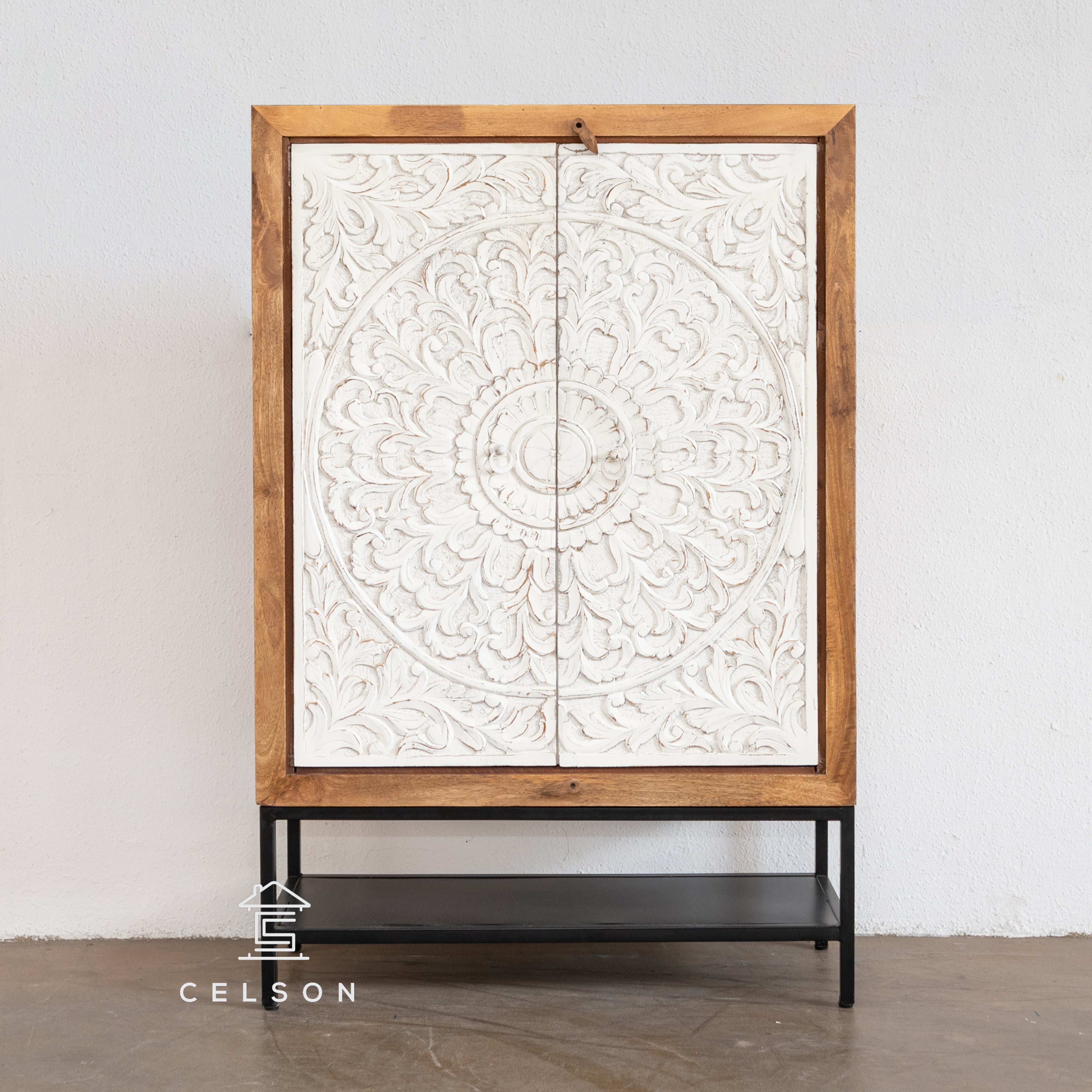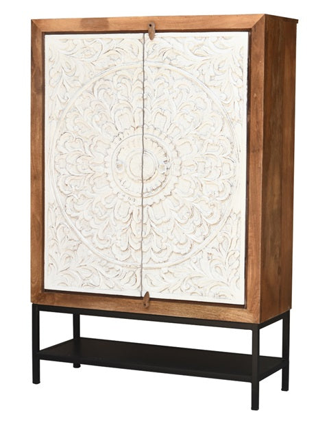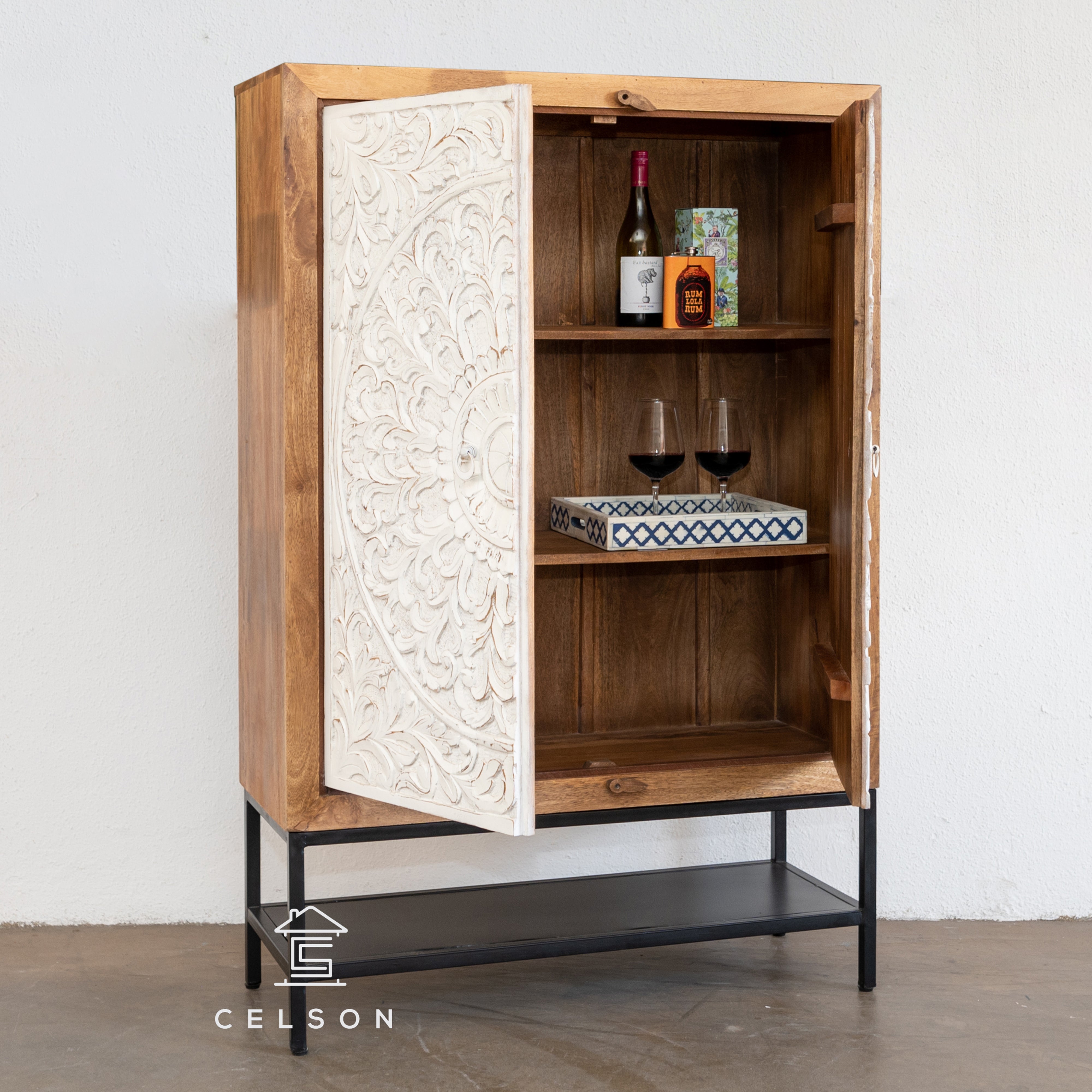 Our solid mango wood bar is the perfect home for all your wine bottles & more with  shelves & exteriors that are awe worthy.