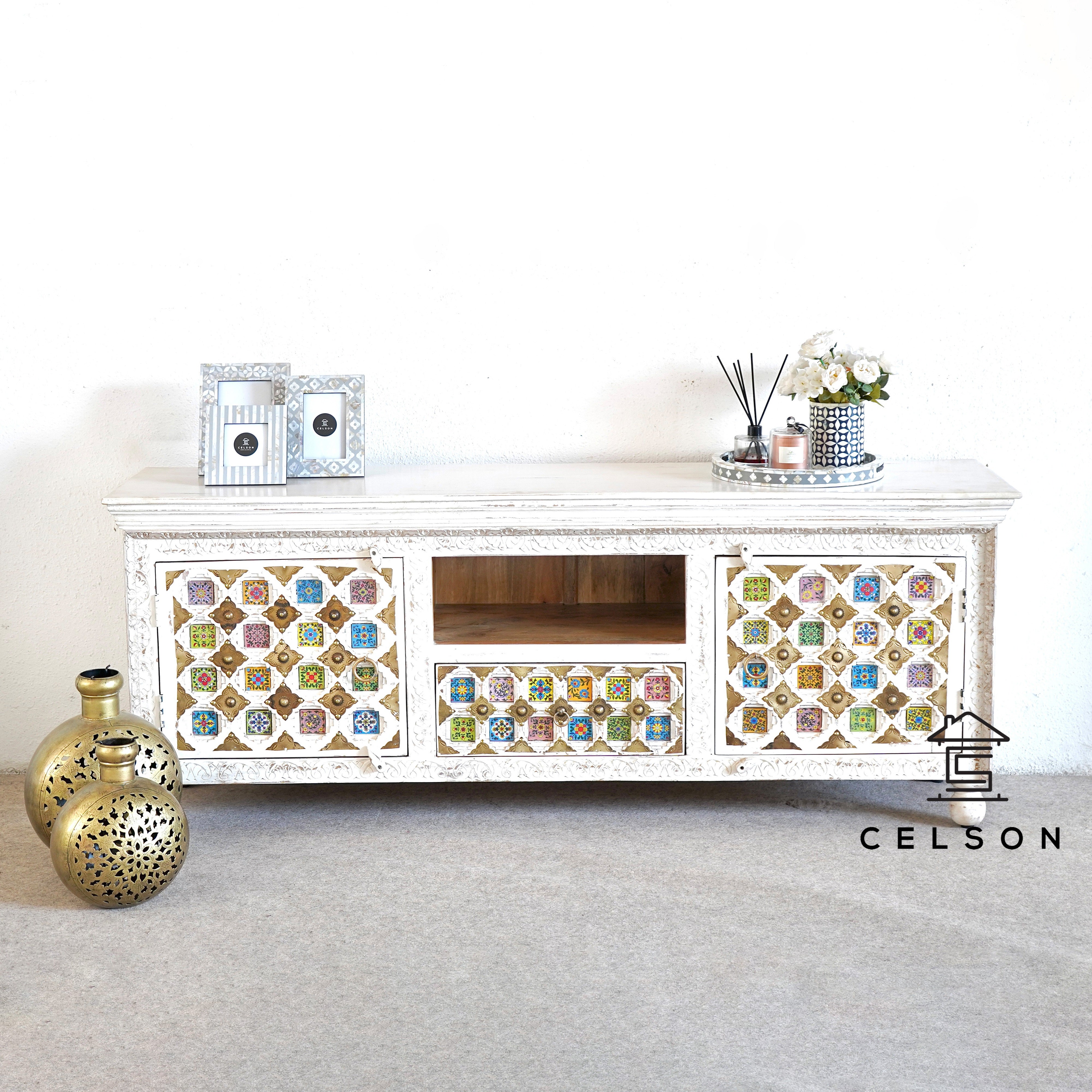 Michelle Hand Carved Tile TV Cabinet