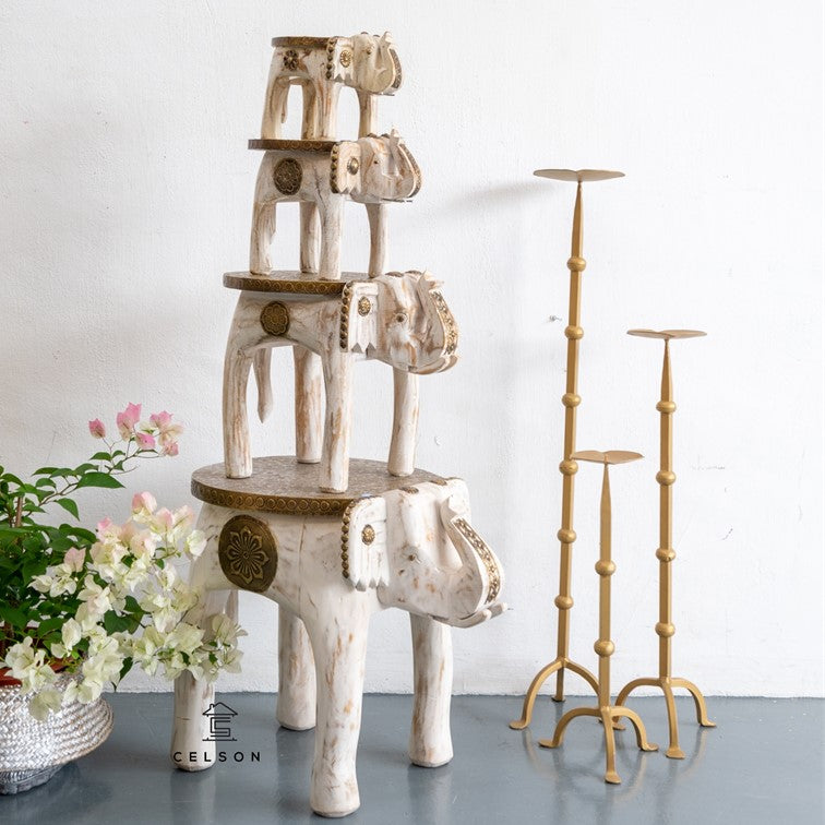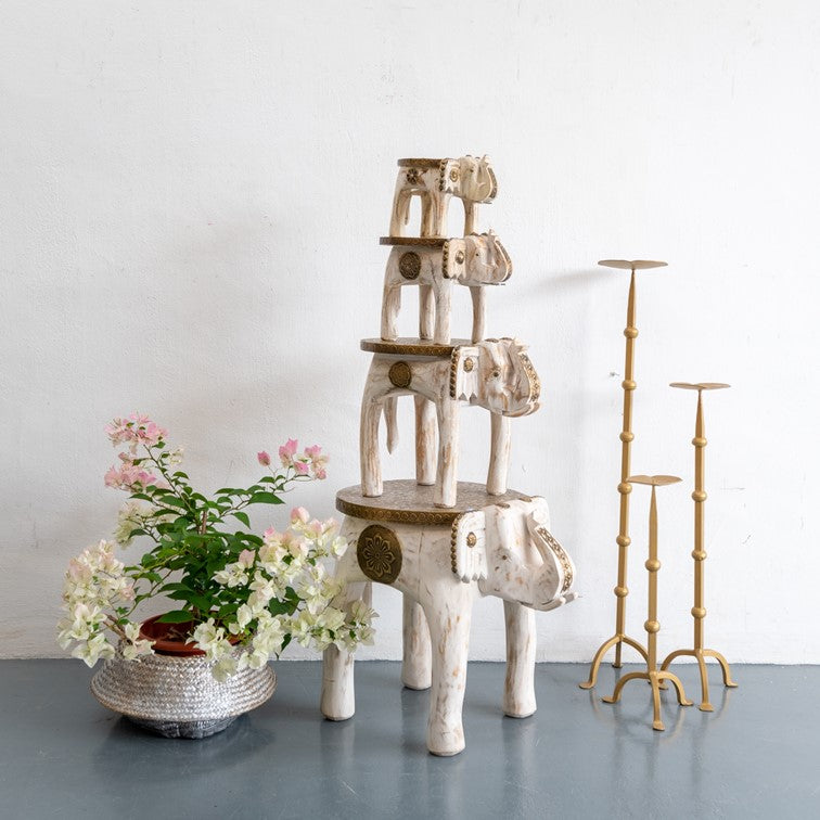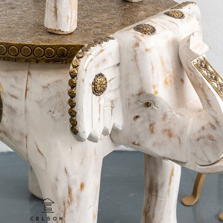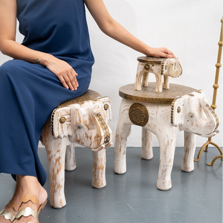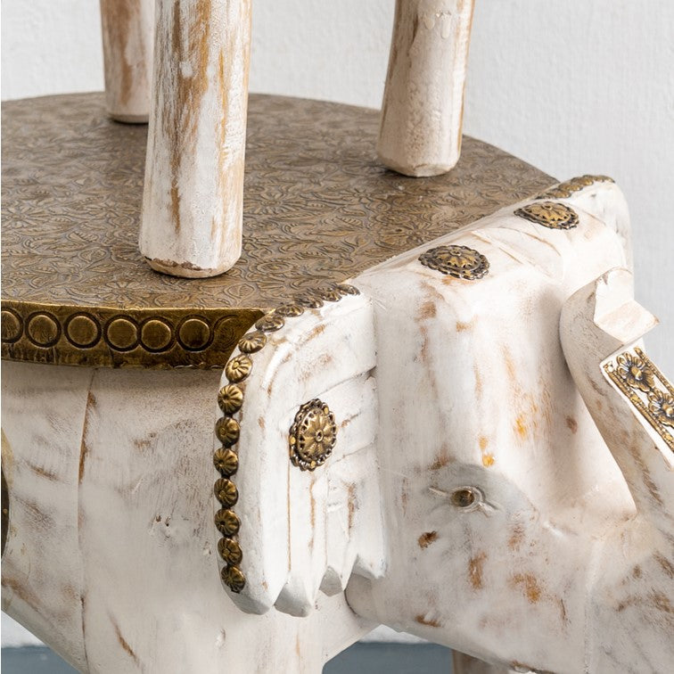 This handcrafted wooden elephant with brass accents is one of our most popular pieces - a unique and functional table with timeless appeal.