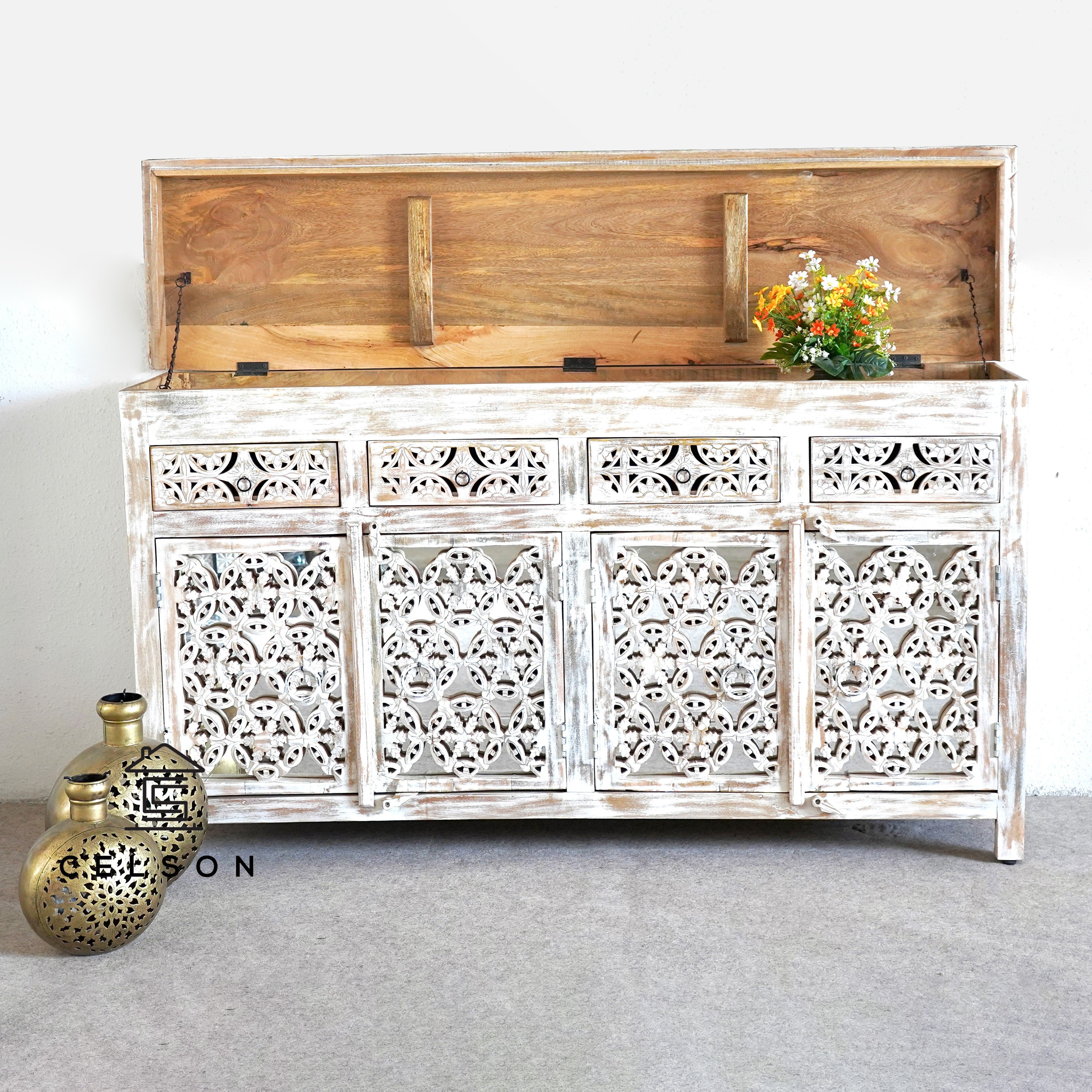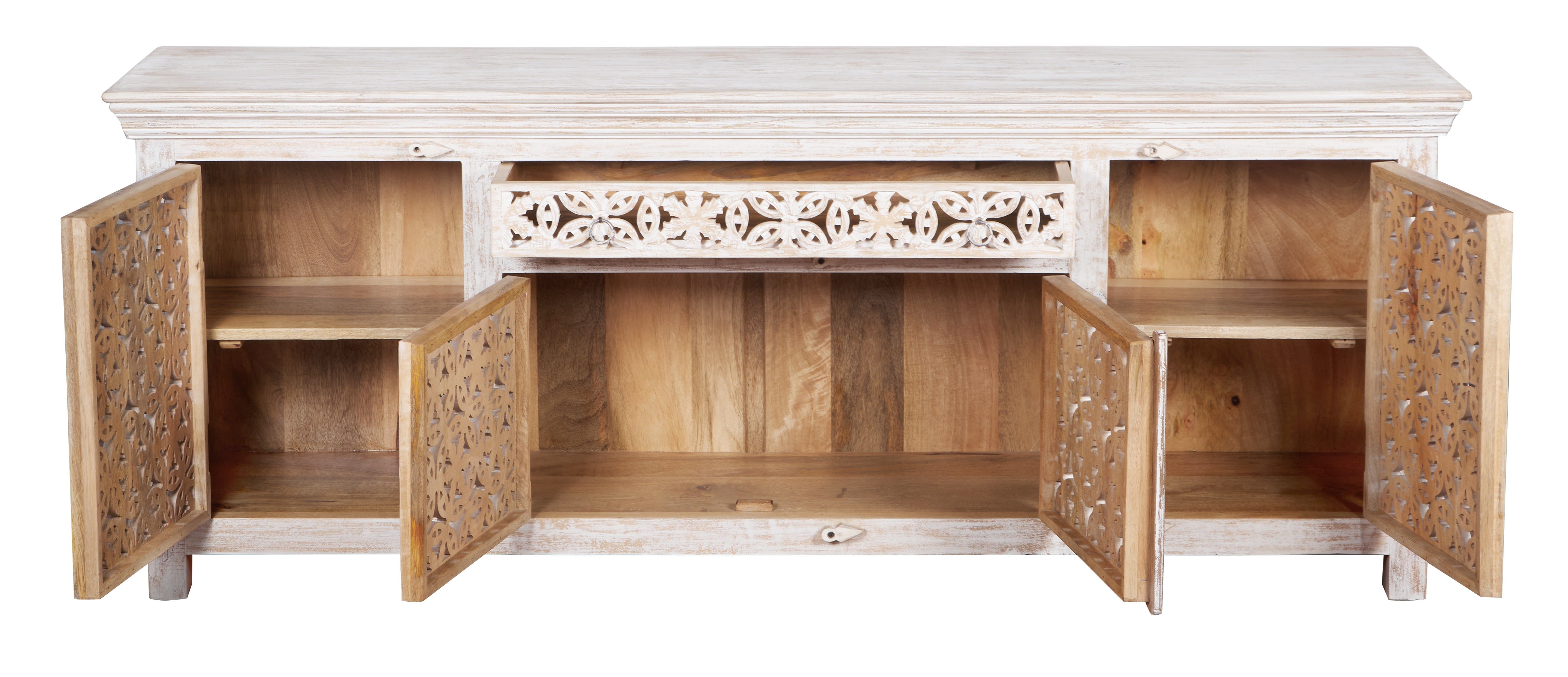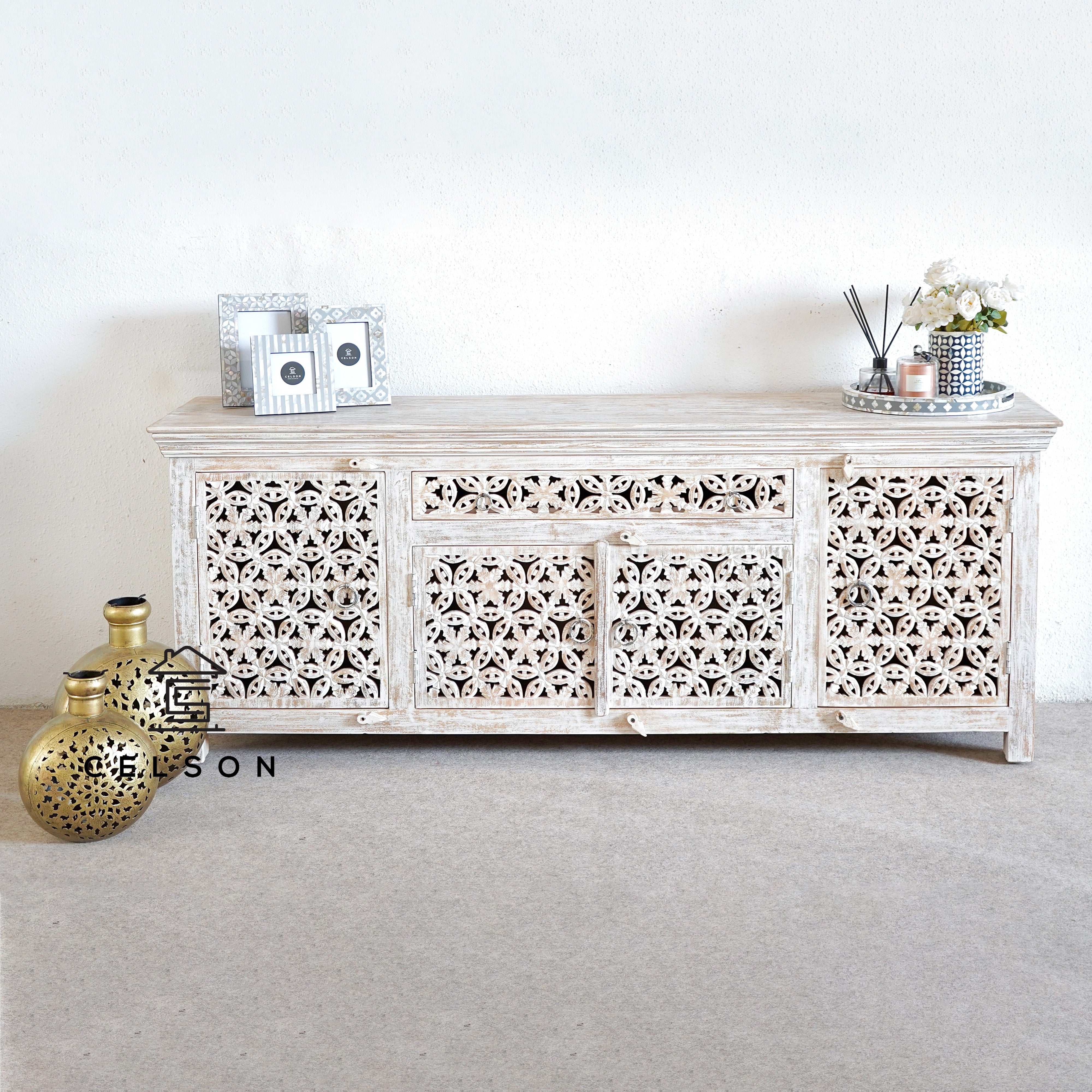 Every curve, every detail, and every hand-carved element tells a story. Our wooden TV console is designed to elevate your living space with its unparalleled craftsmanship and classic charm. A statement piece that blends tradition with modern aesthetics.