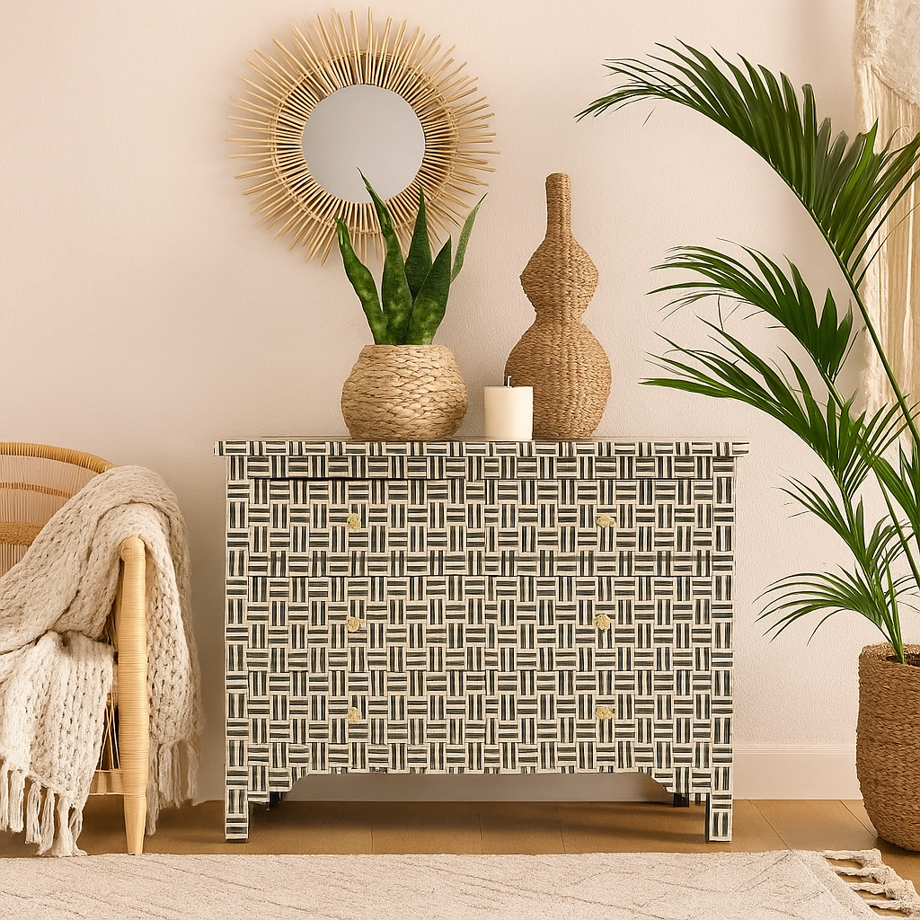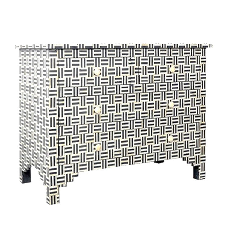 You can start with this bone inlay vertical zigzag pattern chest! This would instantly give your house some new energy!