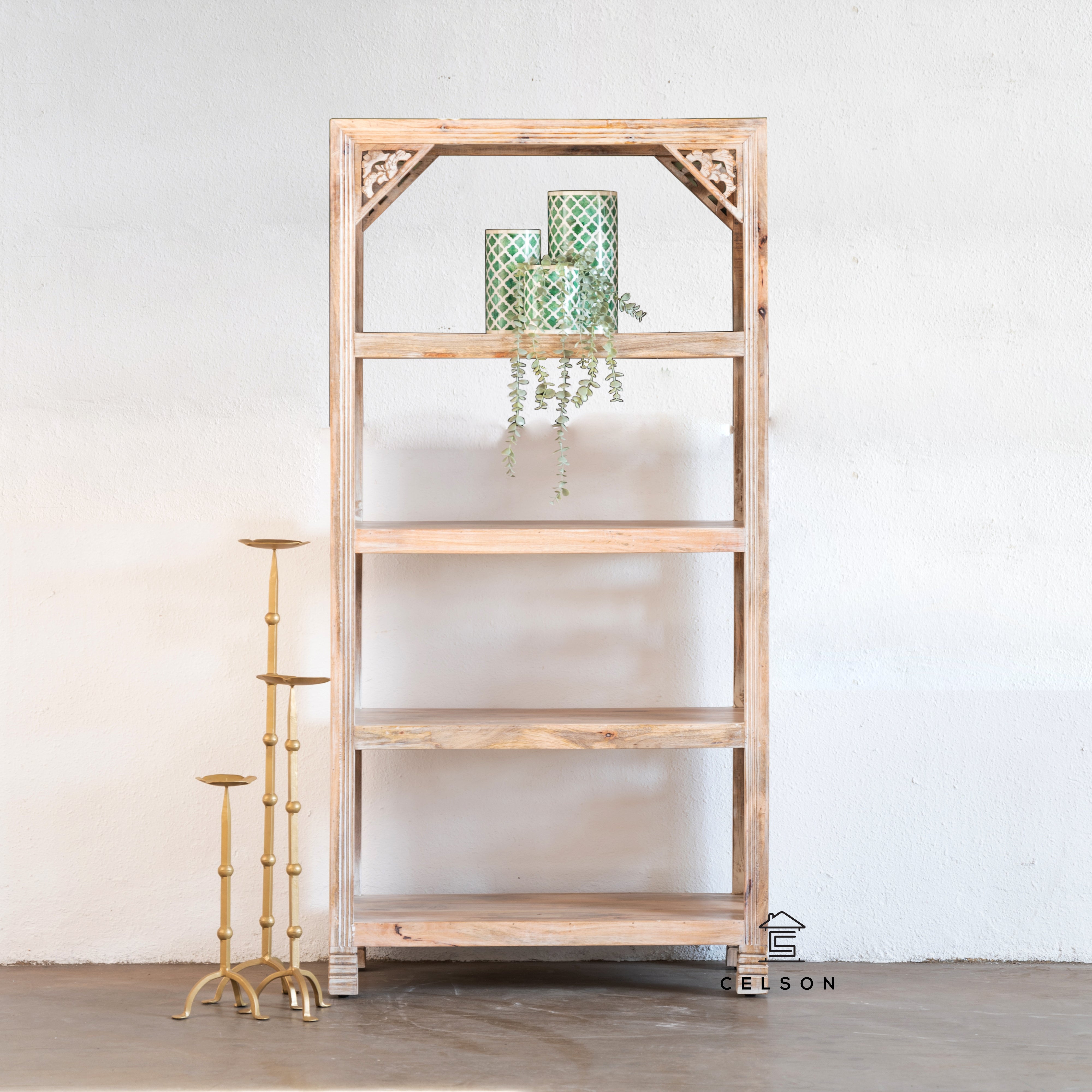 With fully hand carved side panels and four shelves in between to hold your books and other gadgets, this is the perfect piece for vintage furniture lovers!
