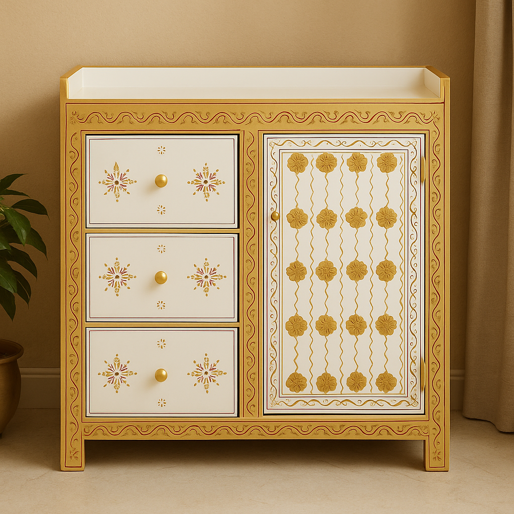 Where tradition meets thoughtful design - a compact mandir cabinet that honors your rituals beautifully.
