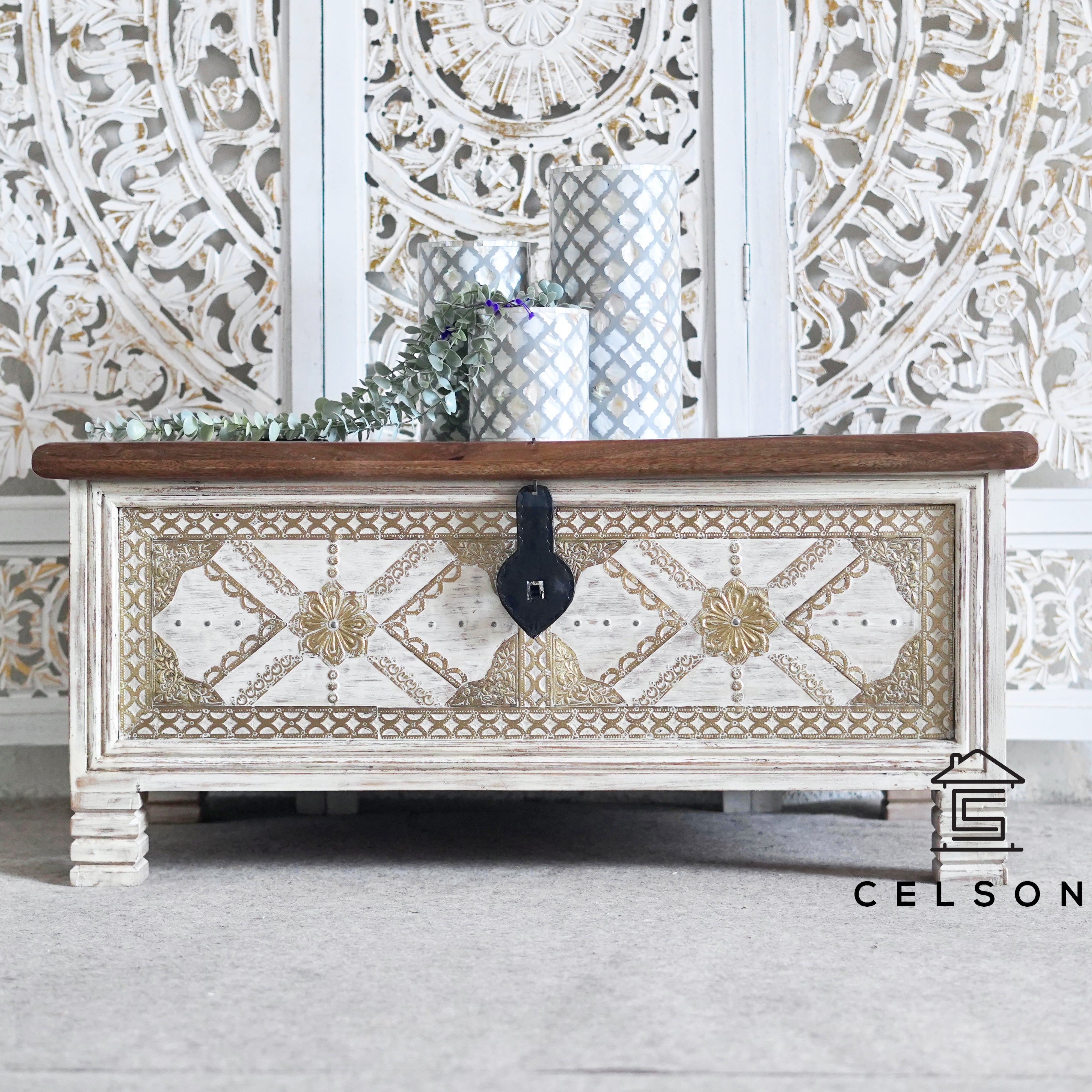 This coffee table/trunk is more than just a piece of furniture. it is a cozy centerpiece for your home. With a charming whitewashed and brown finish, it’s perfect for relaxing with a hot cup of coffee or gathering with family.