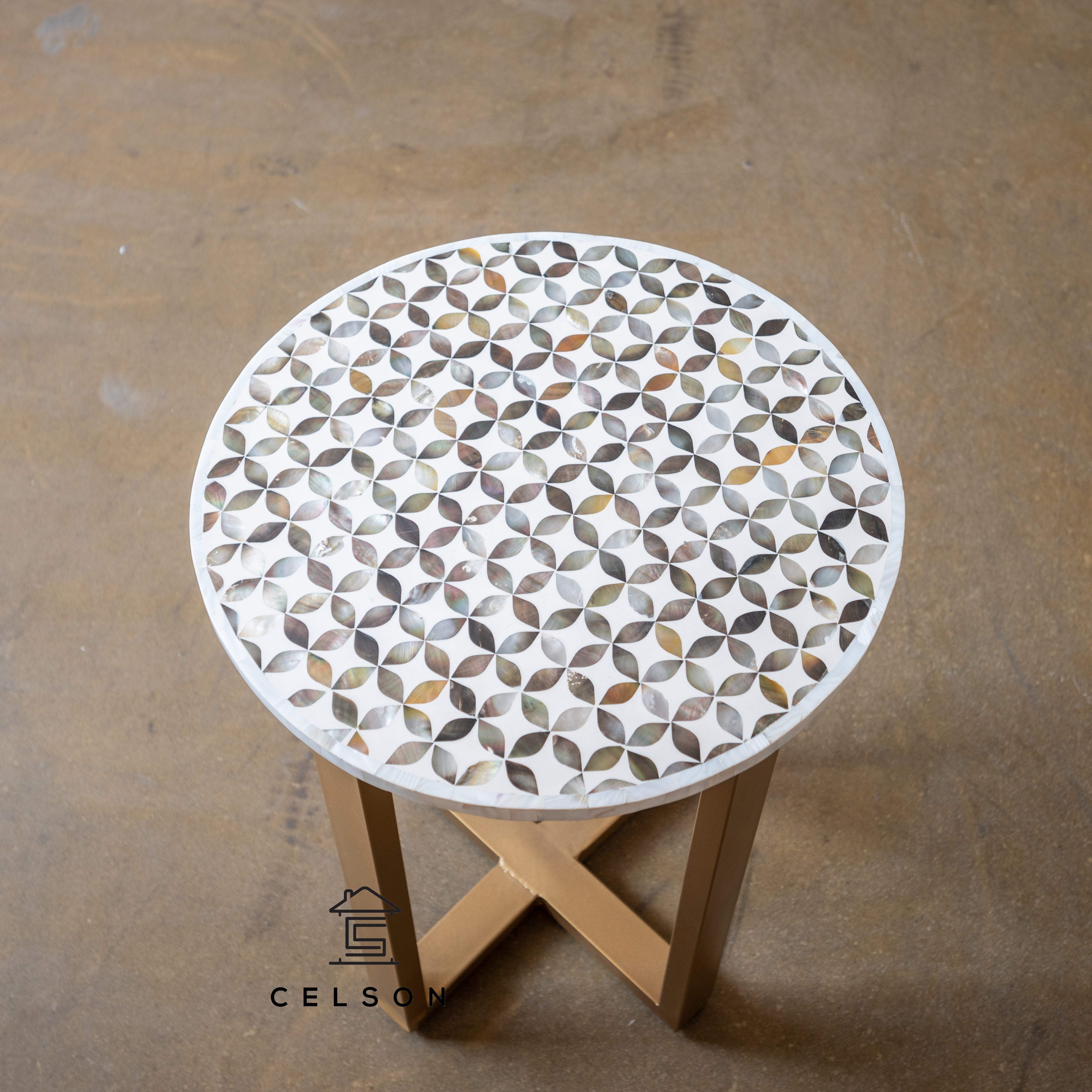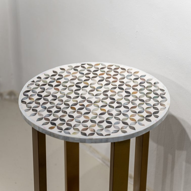 This Geometric pattern MOP Inlay stool can be used in multiple ways - as a bed side table, as an end table, as a coffee table, as a stool, as a bar seat and so much more!