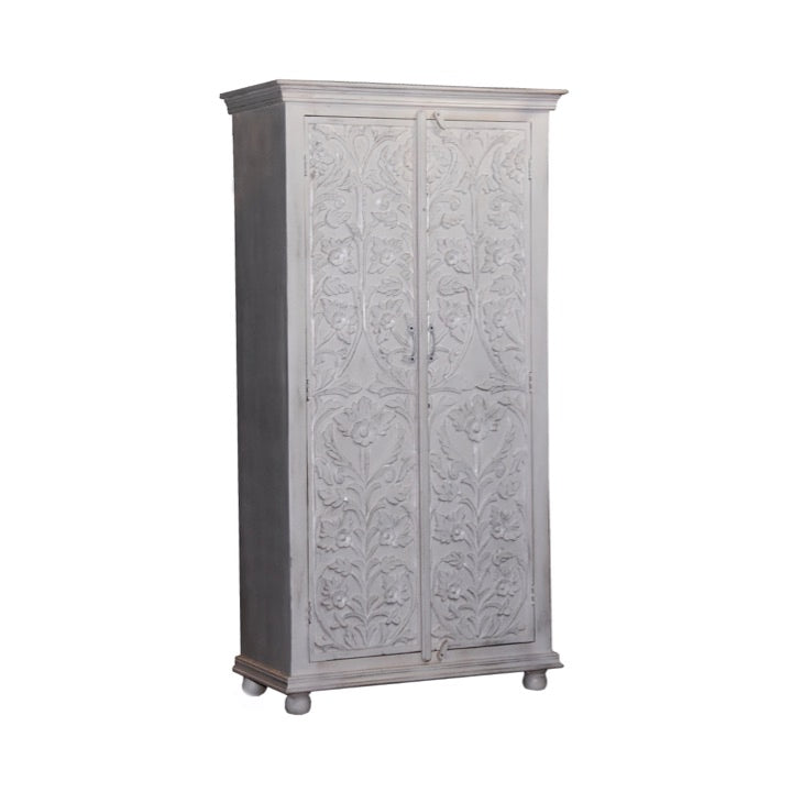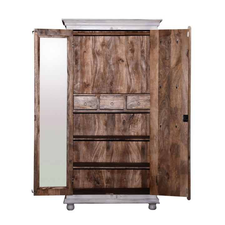 Our Rivia almirah has sturdy mango wood construction with a beautiful white finish.